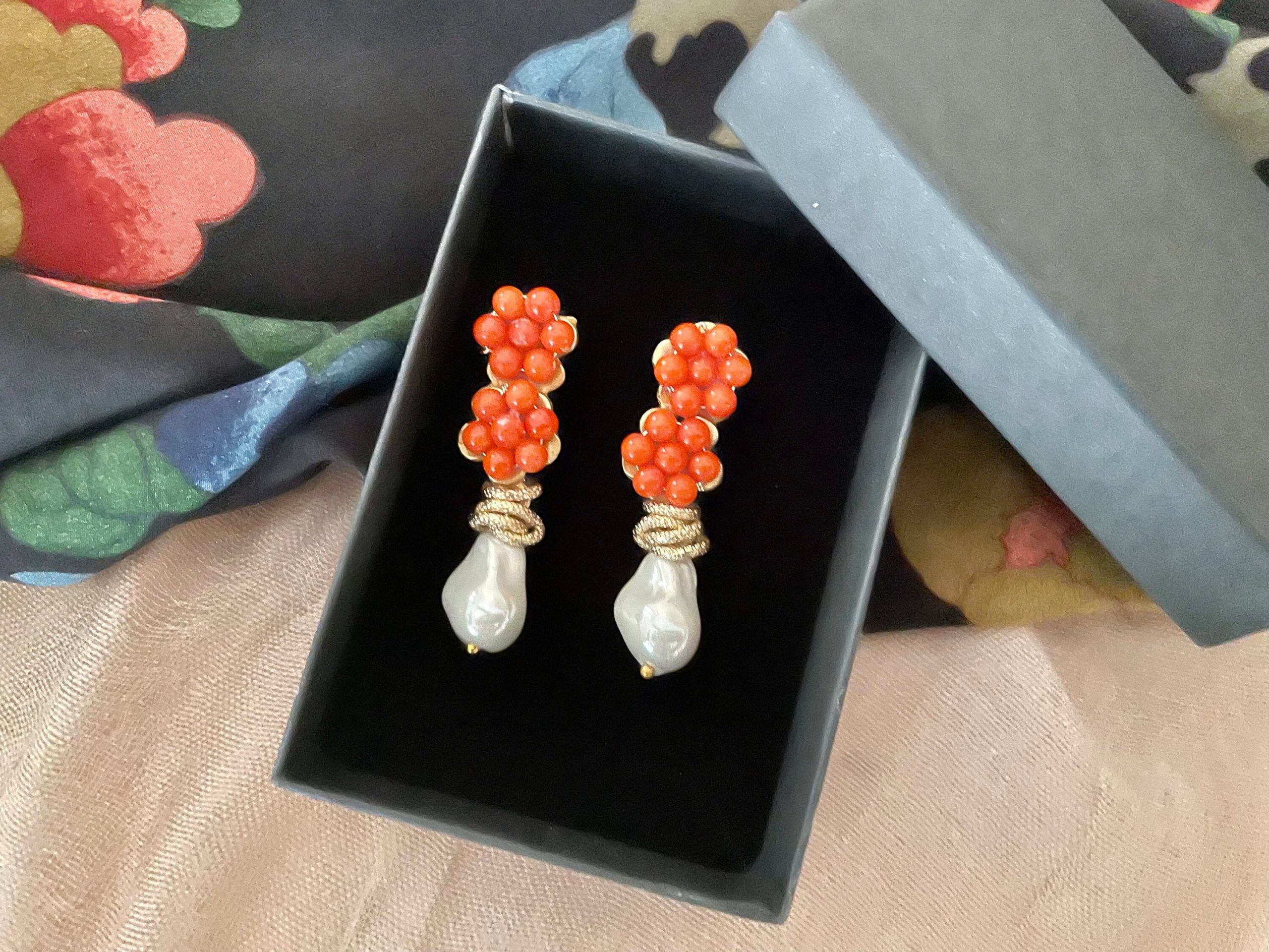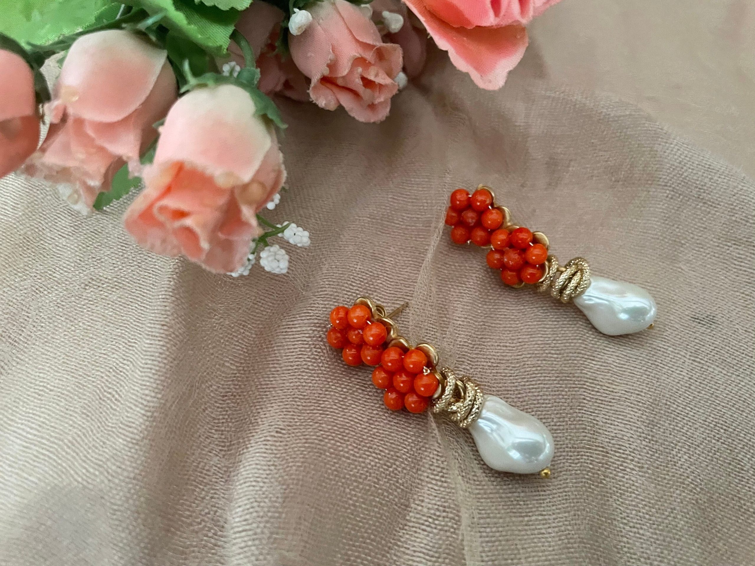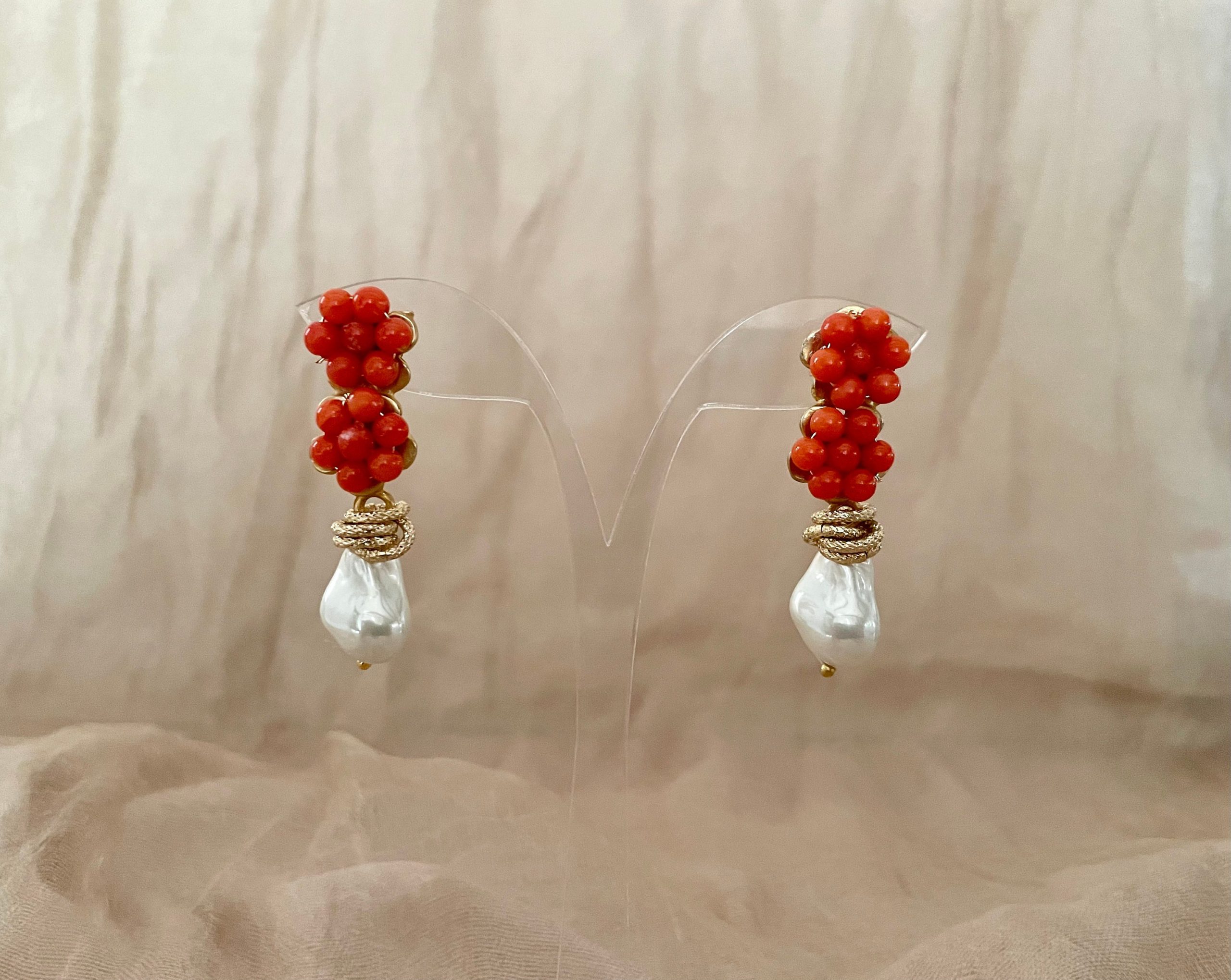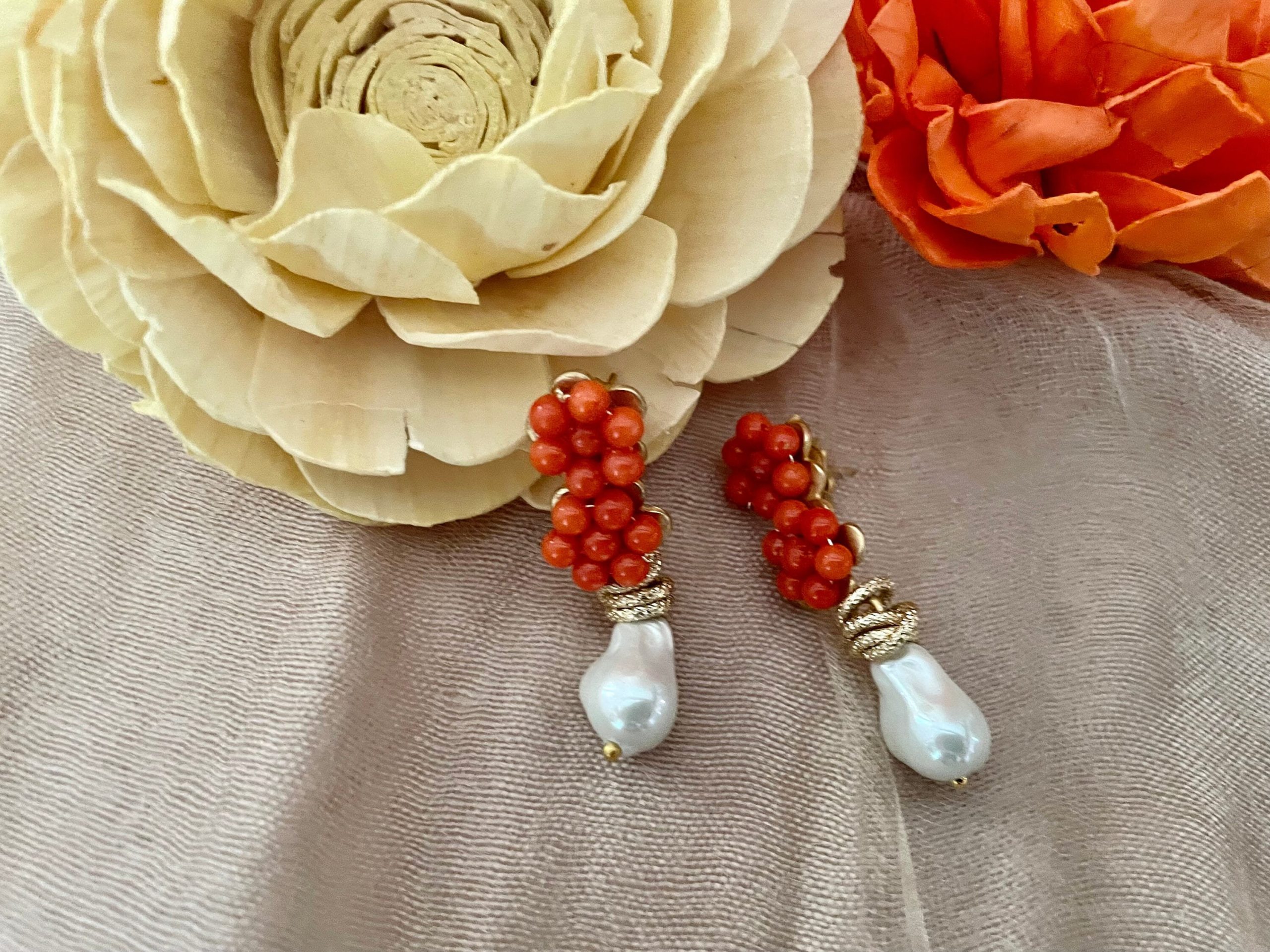 Realizzati con perno in zama rivestito da piccole perle di Corallo bambù a forma di fiori.