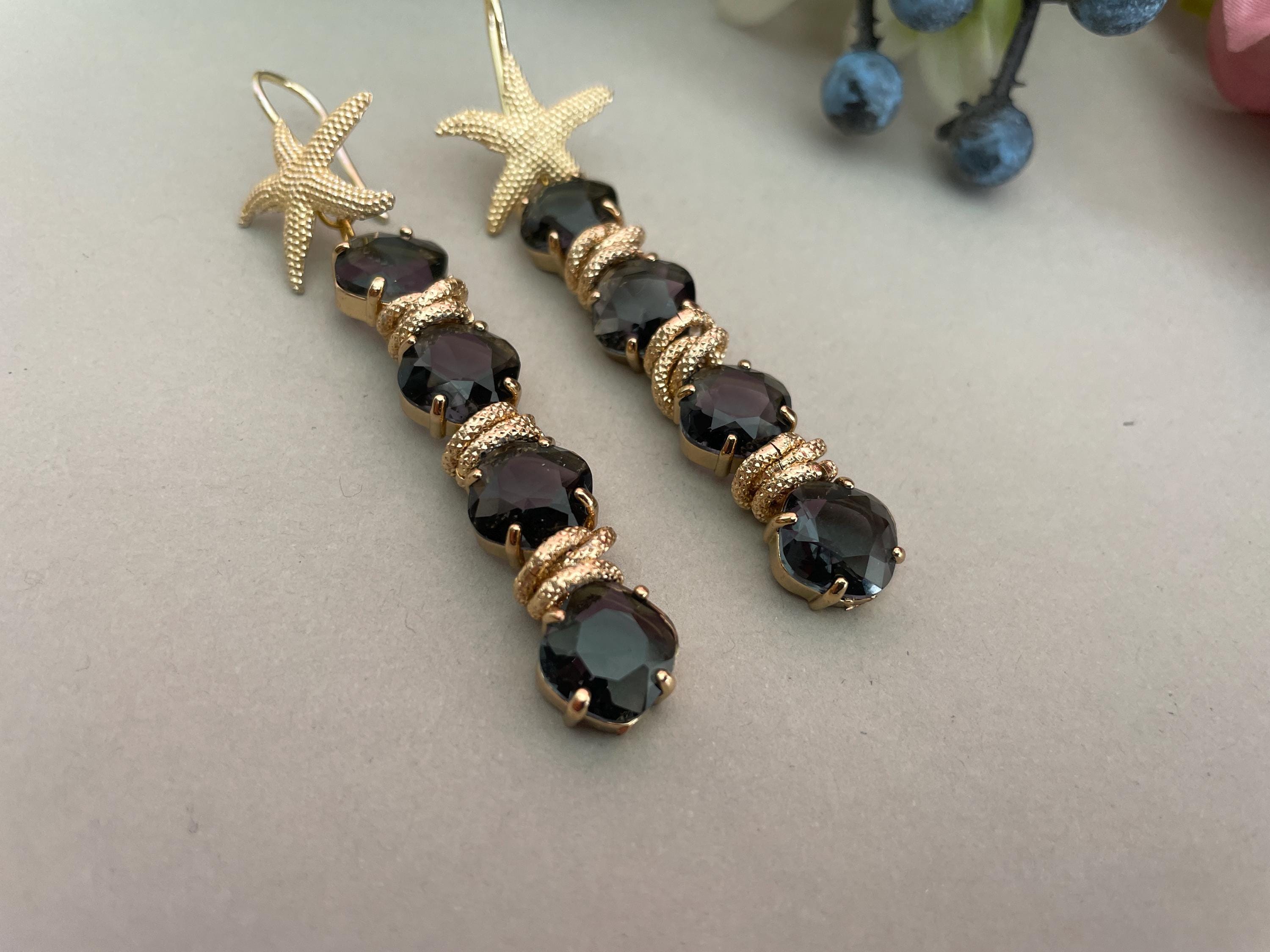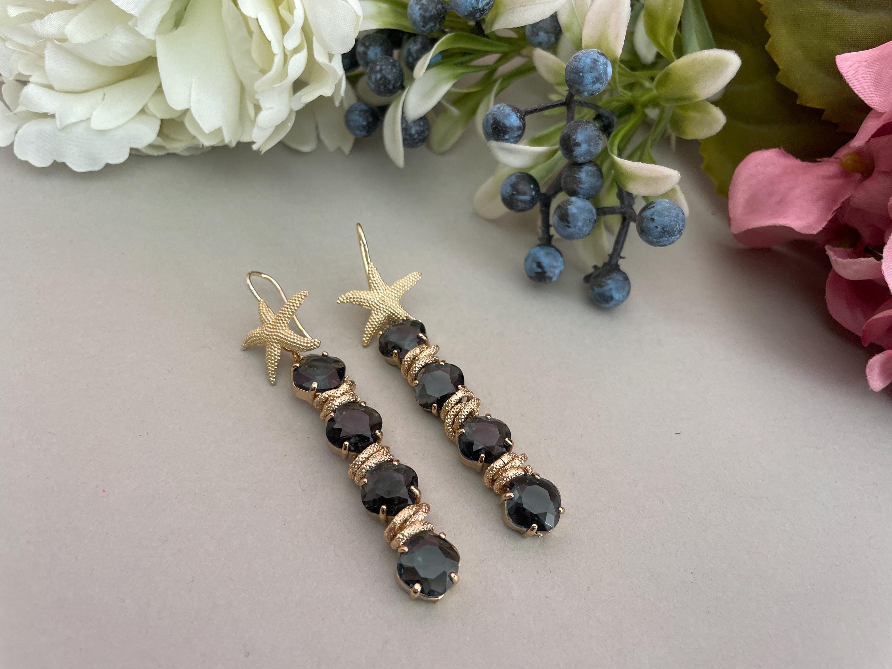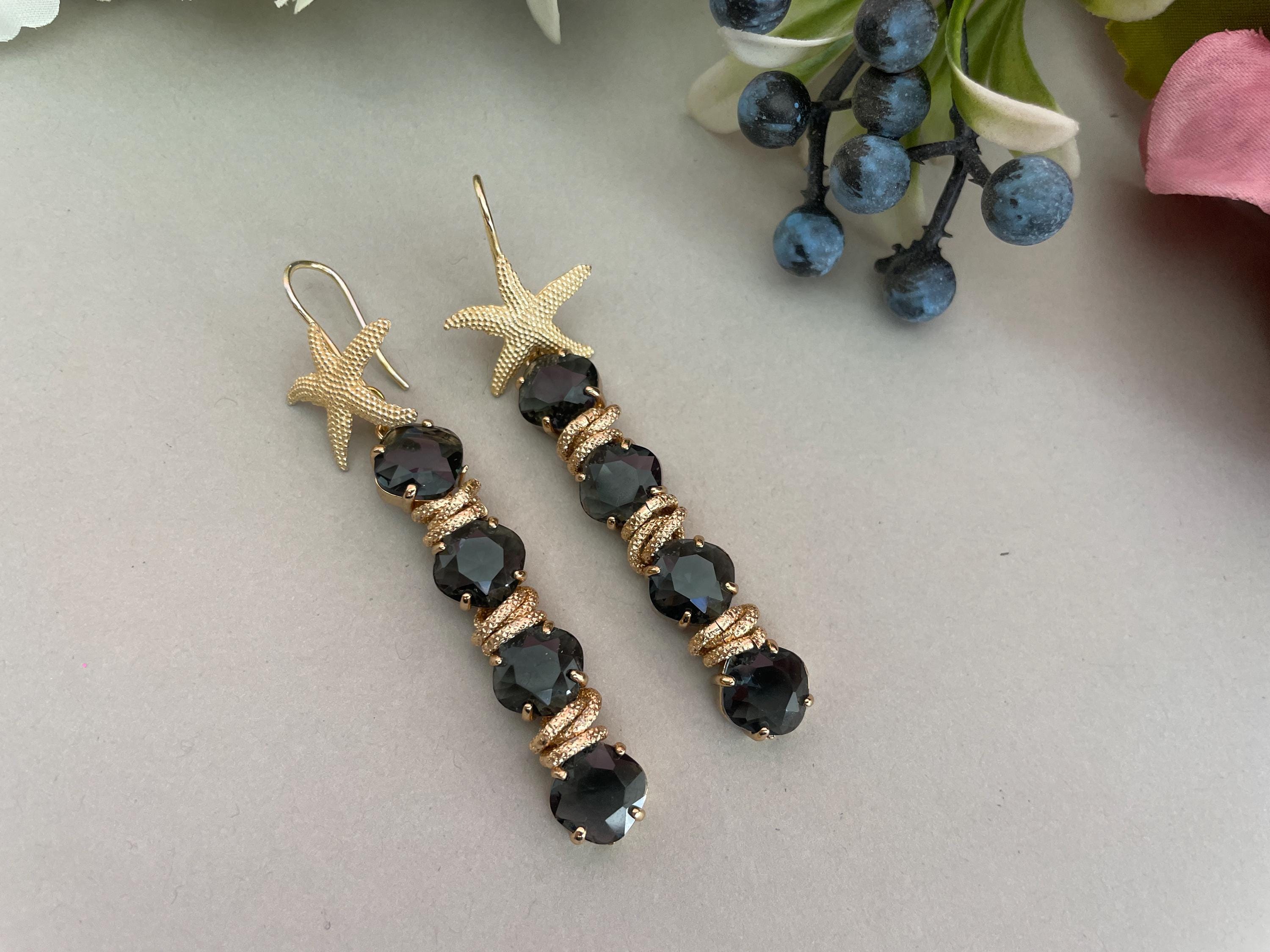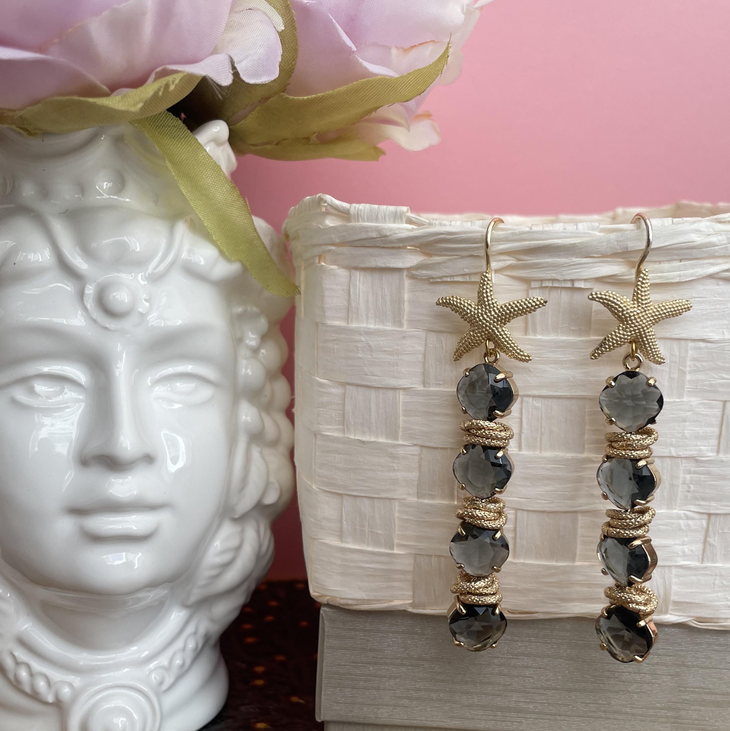 Questi orecchini sono realizzati con un gancio di ottone a forma di Stella e 4 cristalli connessi fra loro di colore grigio.