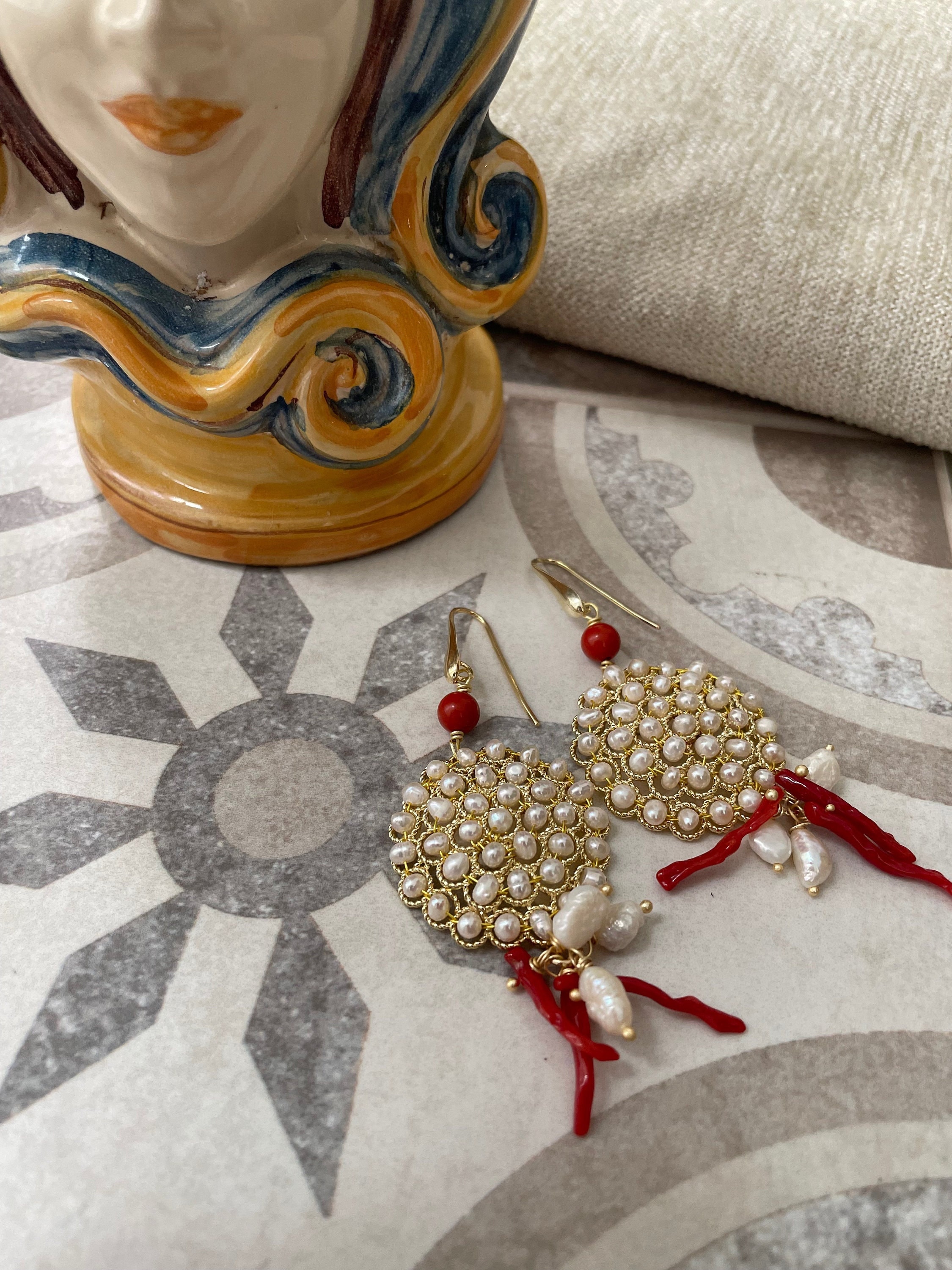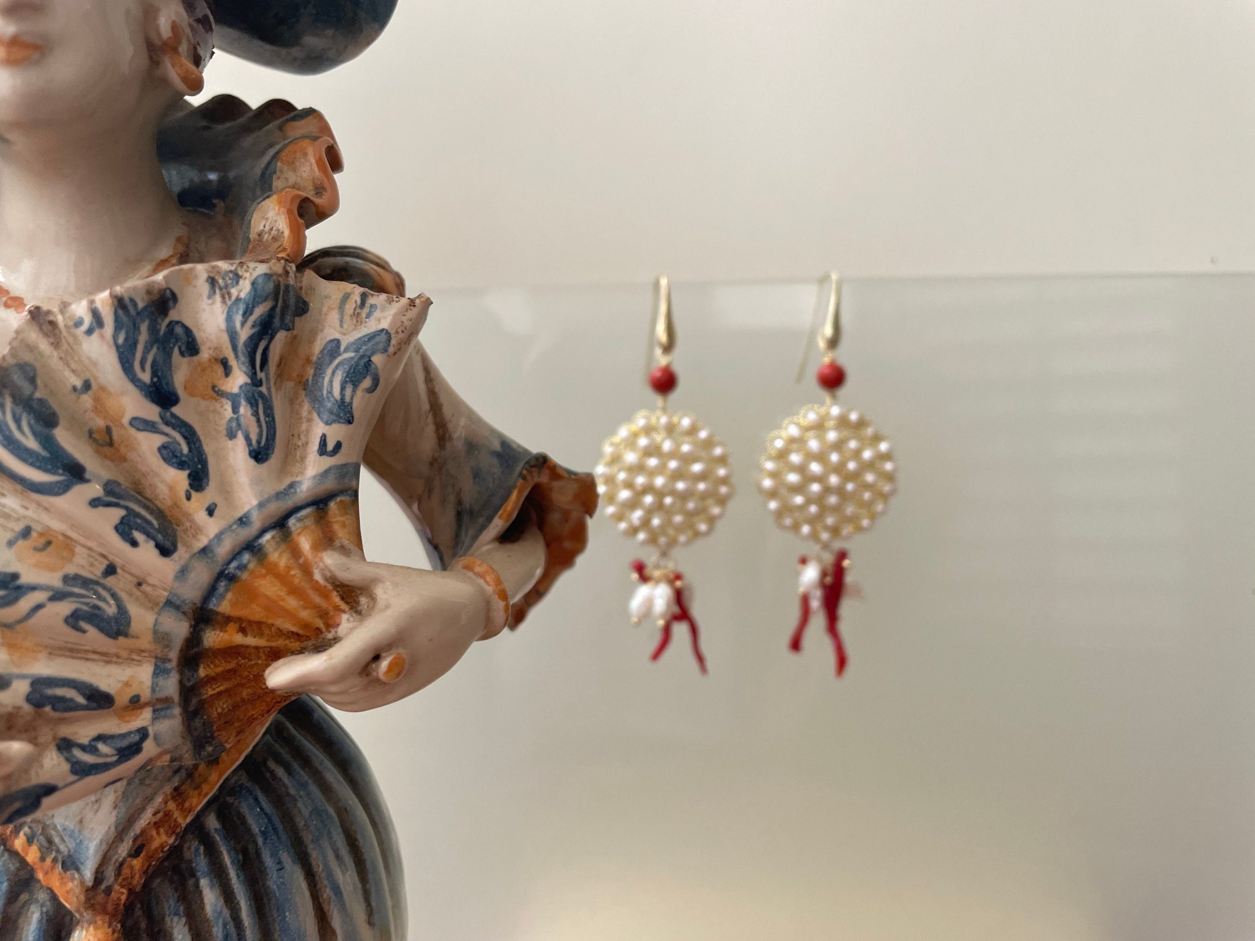La filigrana è sormontata da una perla di Pasta di Corallo.