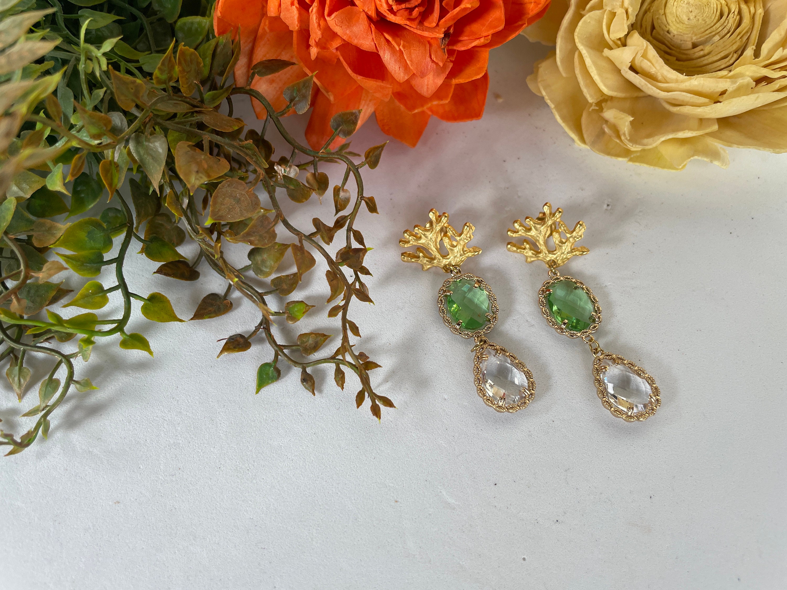 Orecchini pendenti, perni zama rami di corallo, orecchini con cristalli colorati, orecchini eleganti.