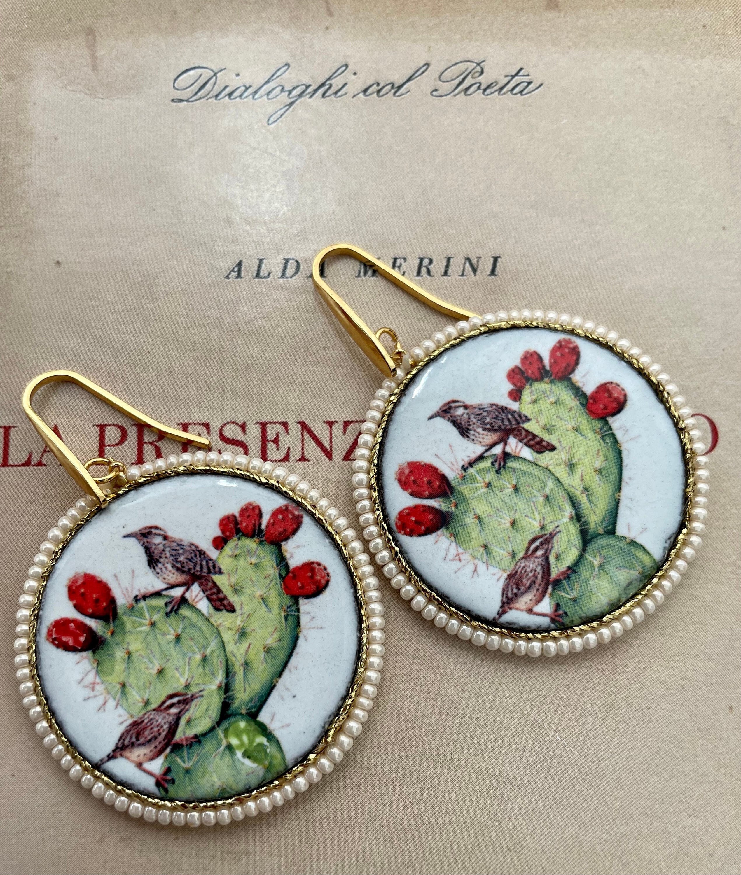 Realizzati con monachella in argento sterling 925 e grande mattonella tonda in ceramica di Caltagirone.