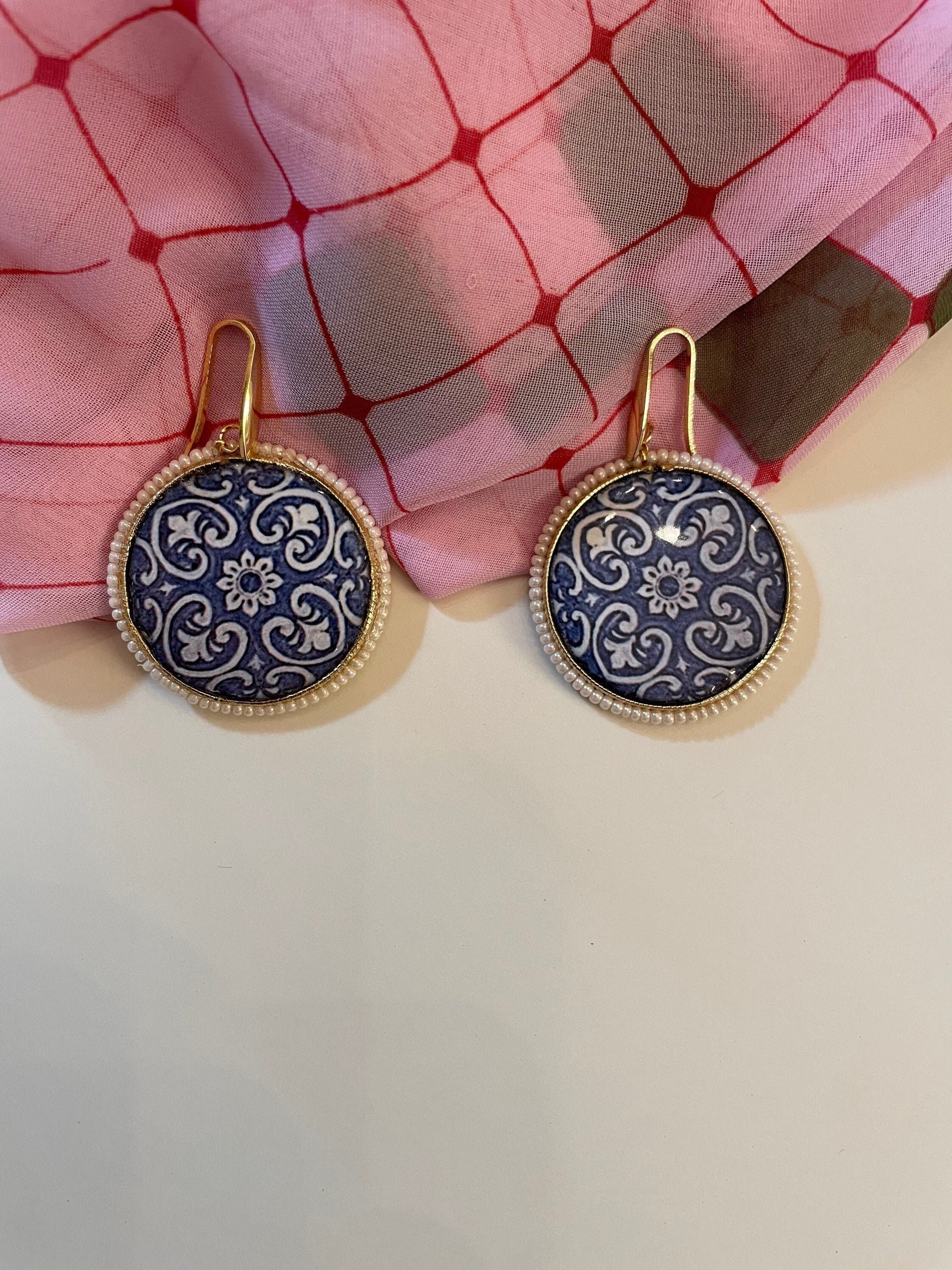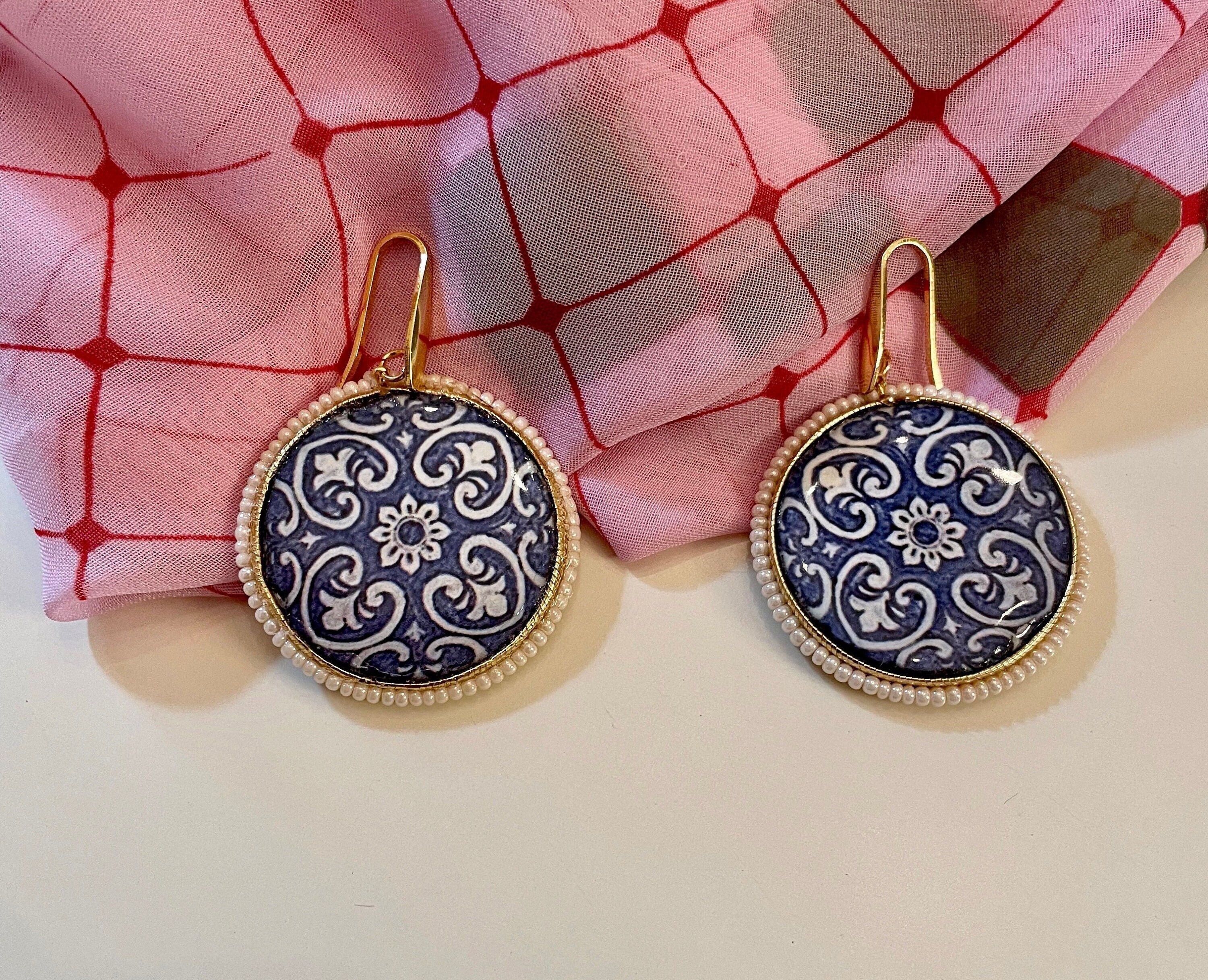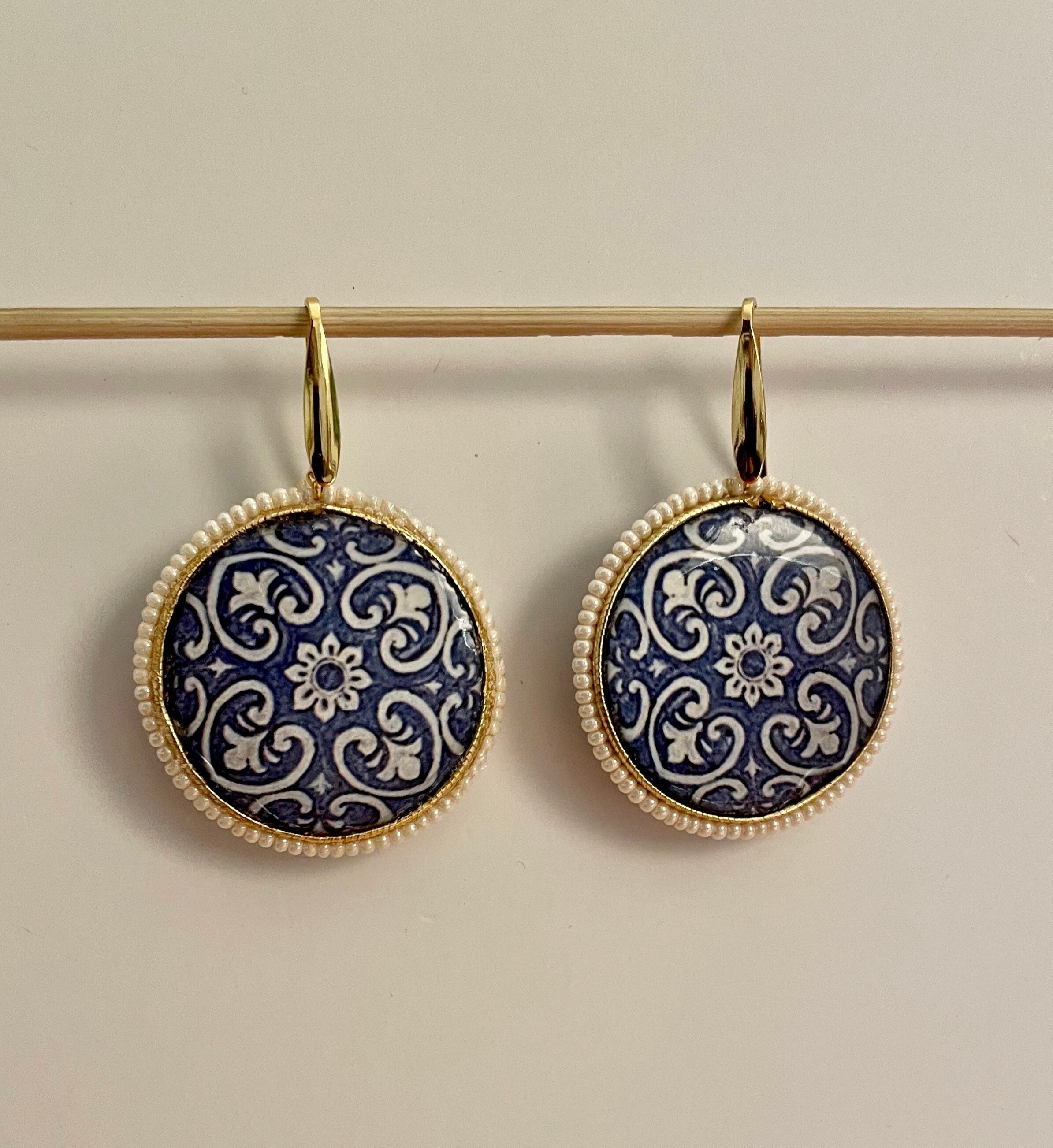 Realizzati con monachella in argento sterling 925 e grande mattonella tonda in ceramica di Caltagirone.