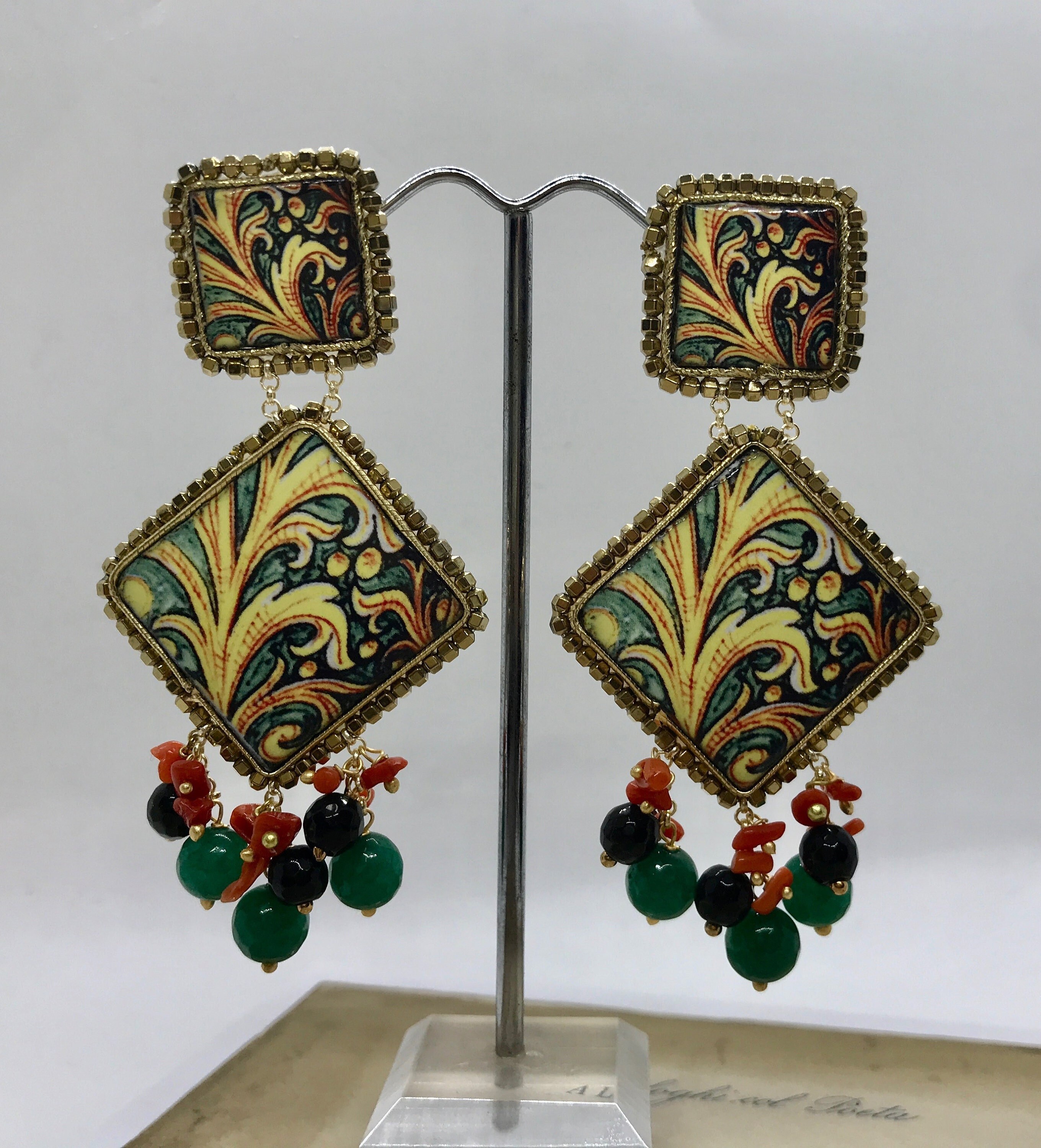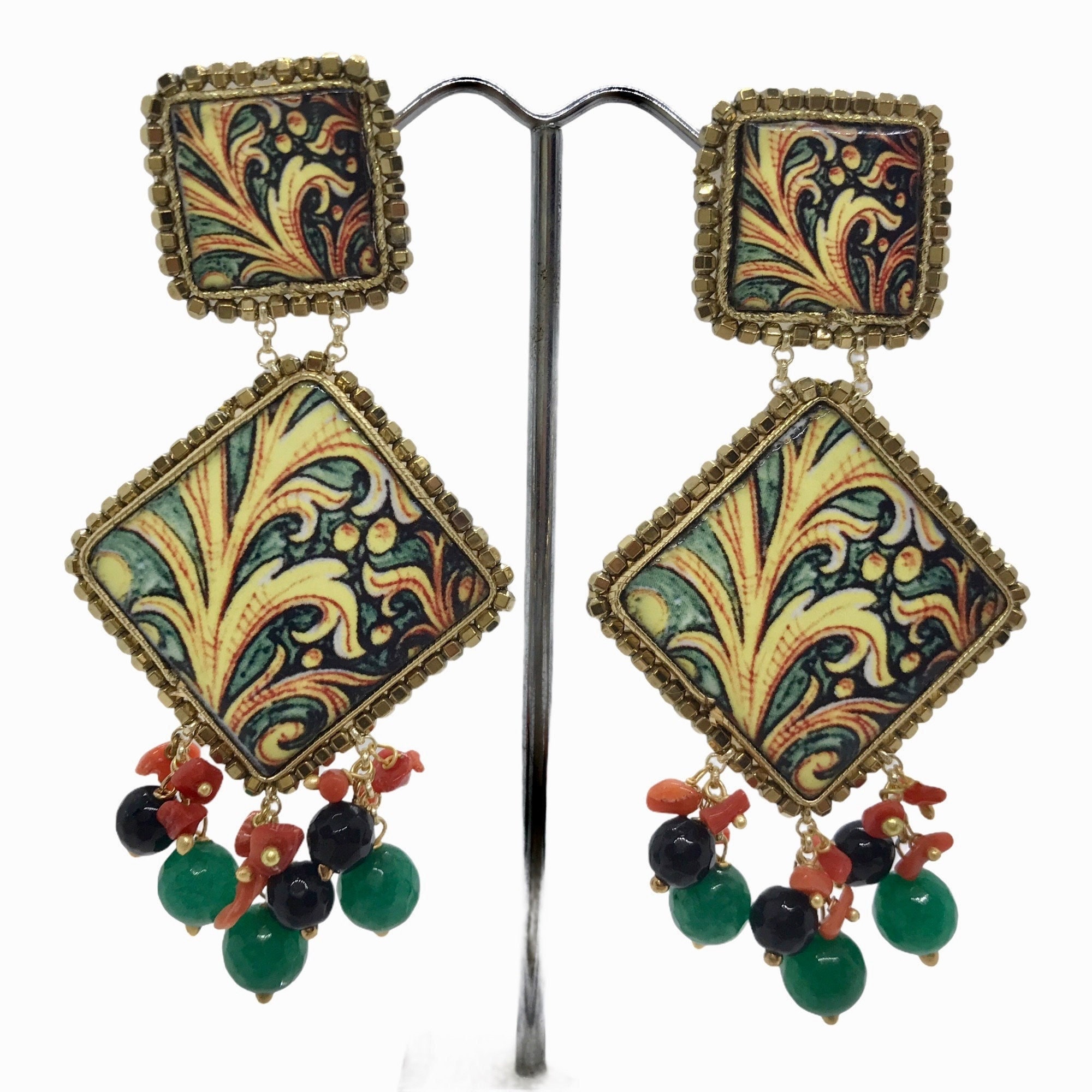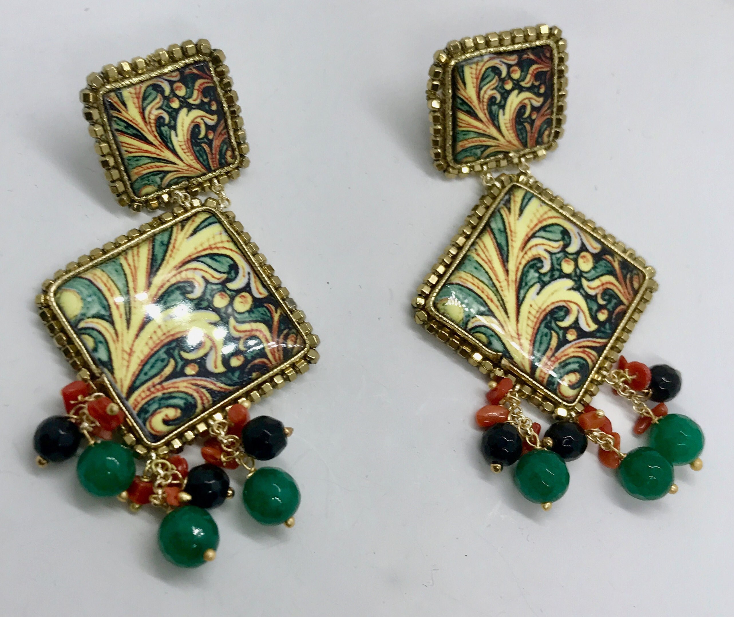 Orecchini siciliani con mattonelle in ceramica di Caltagirone.