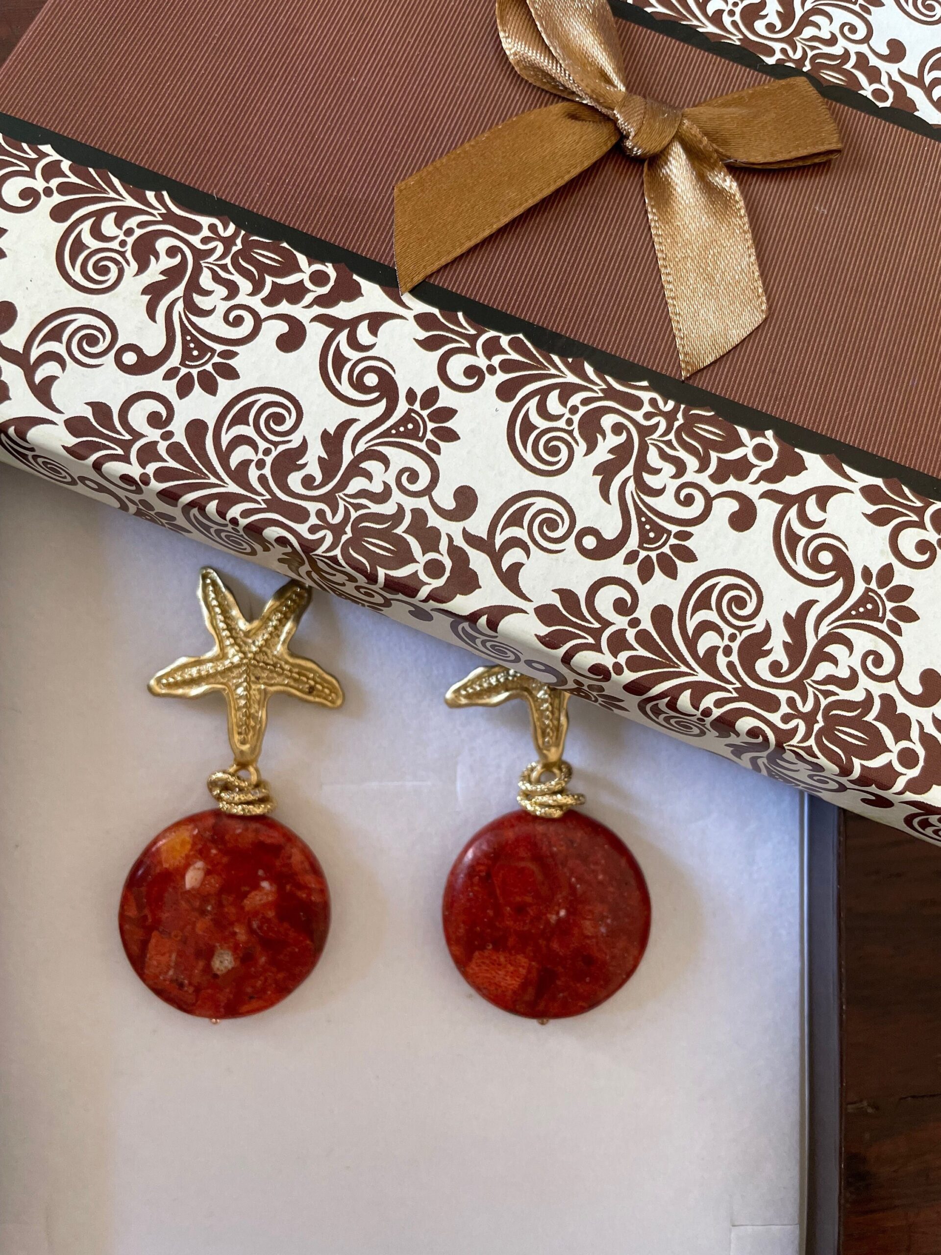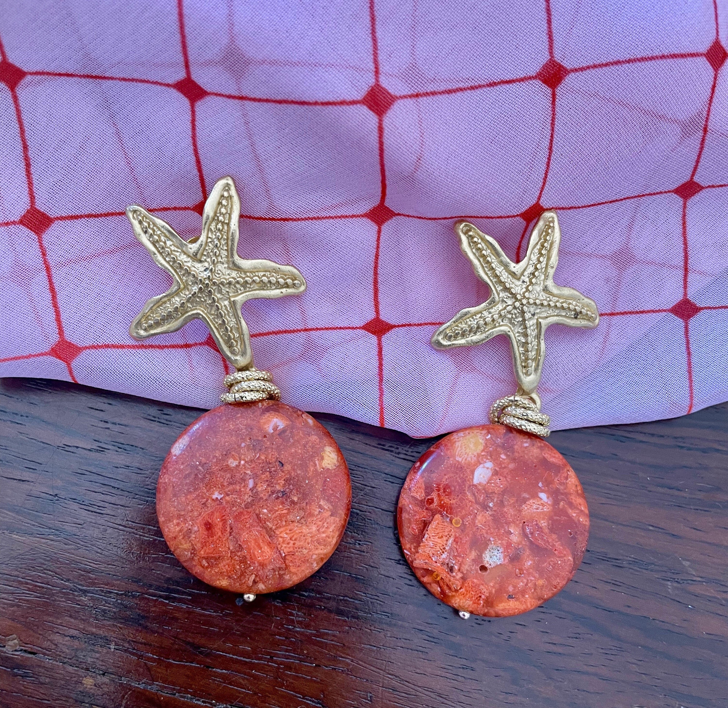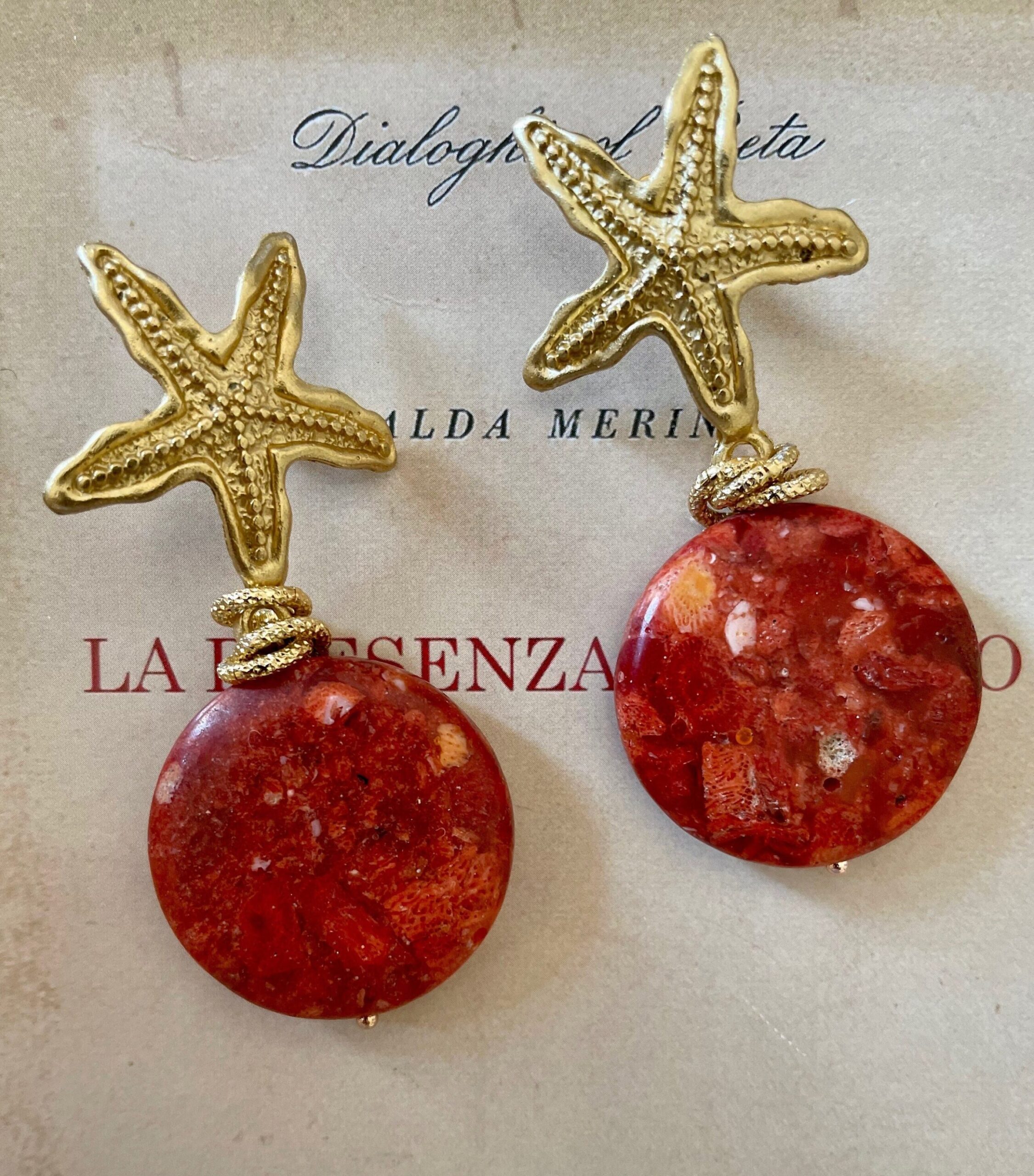 Orecchini raffinati con perni in zama raffiguranti stelle marine.