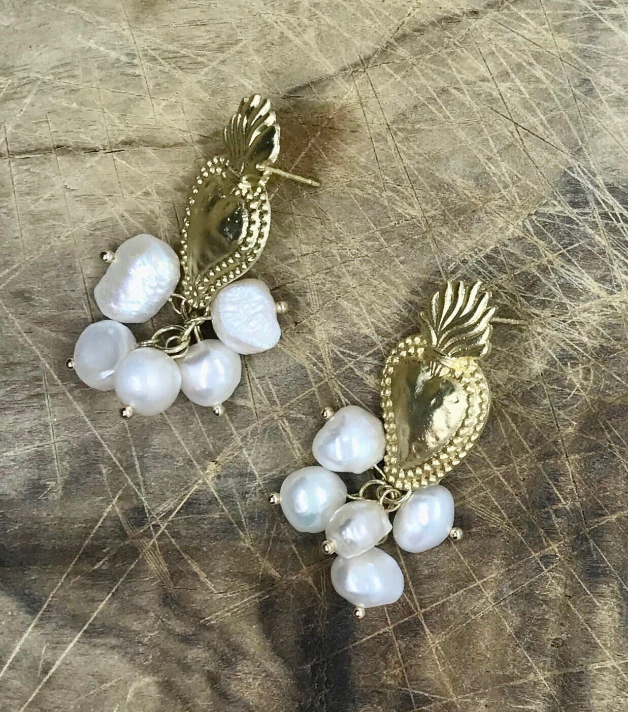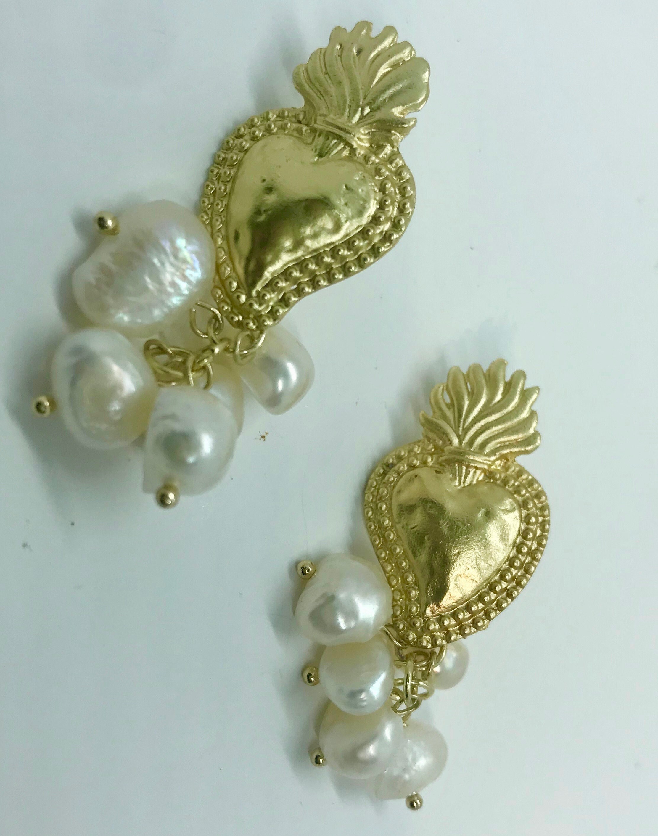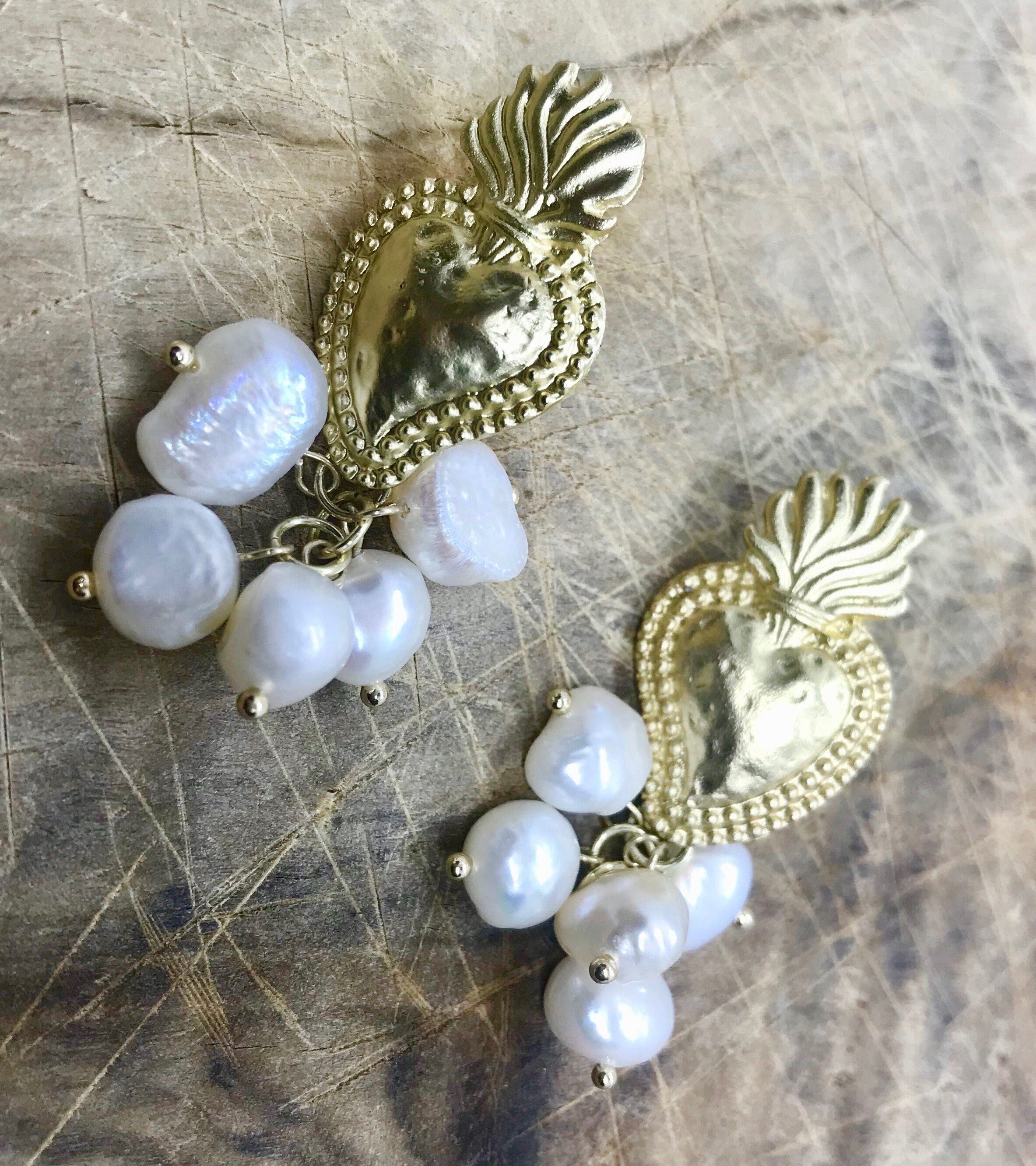Orecchini siciliani cuore sacro e grappolo di perle di fiume