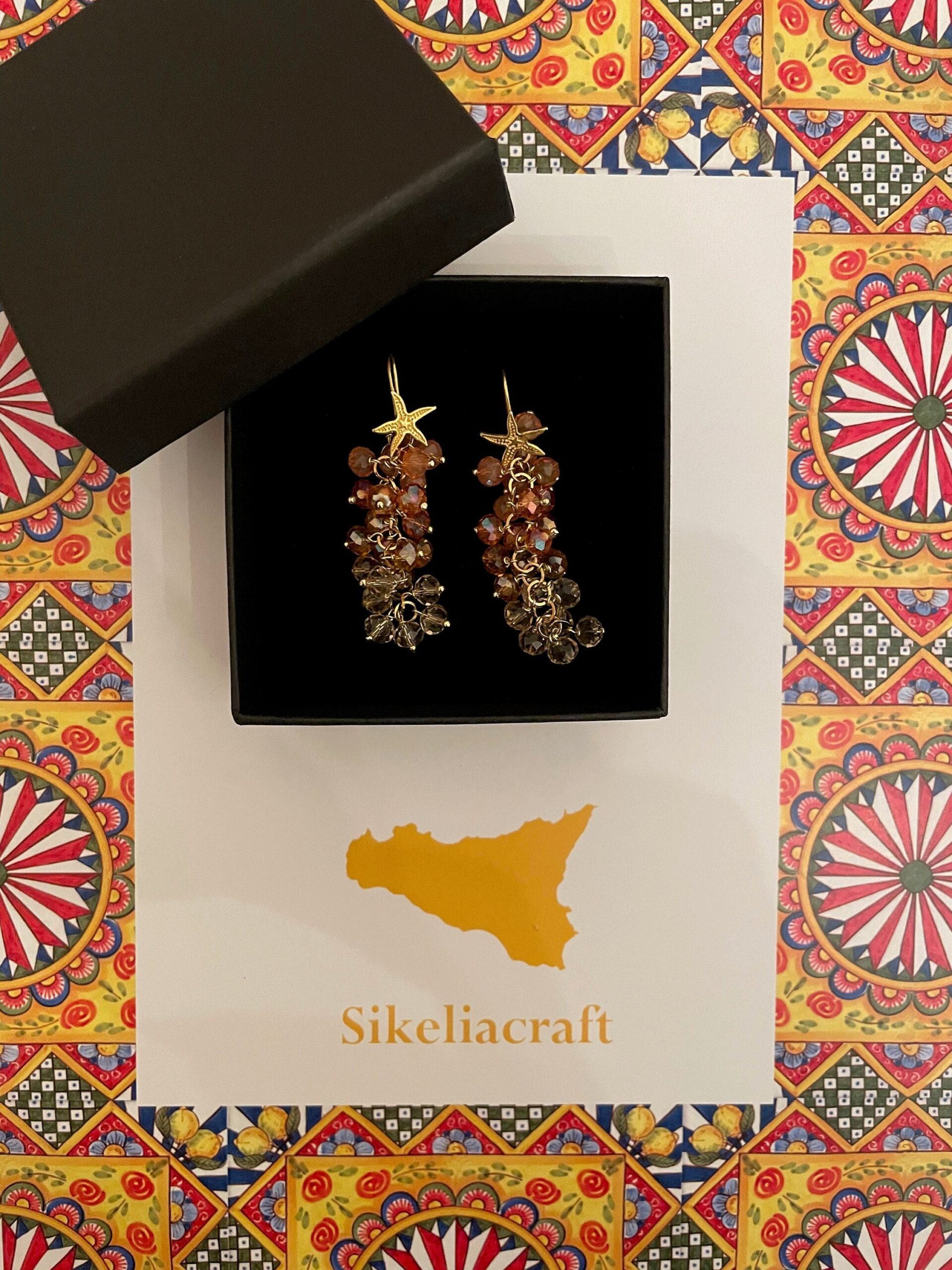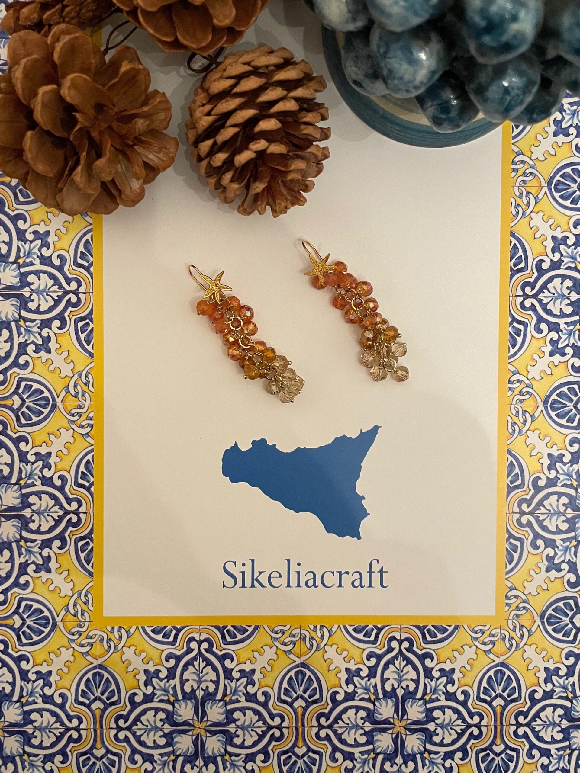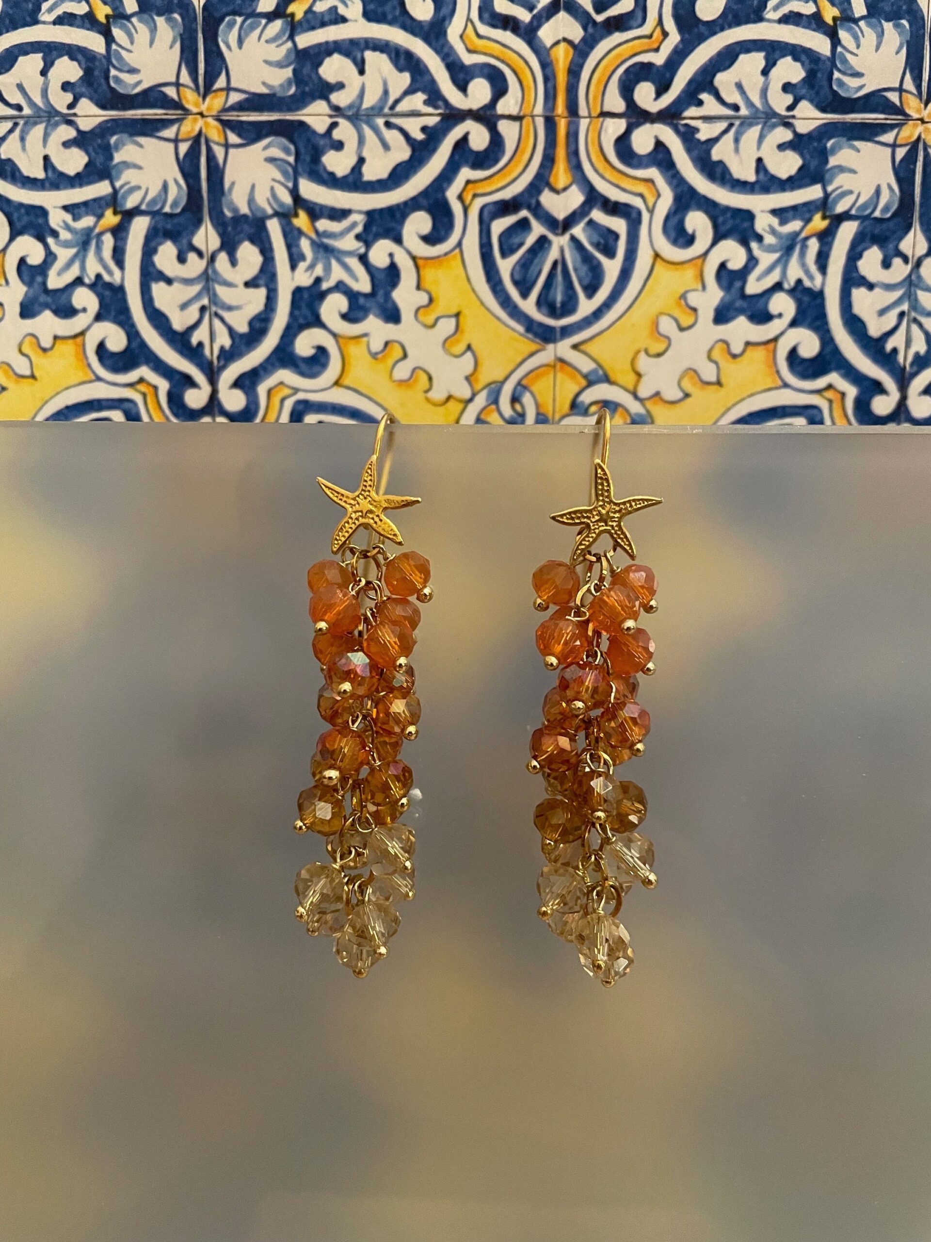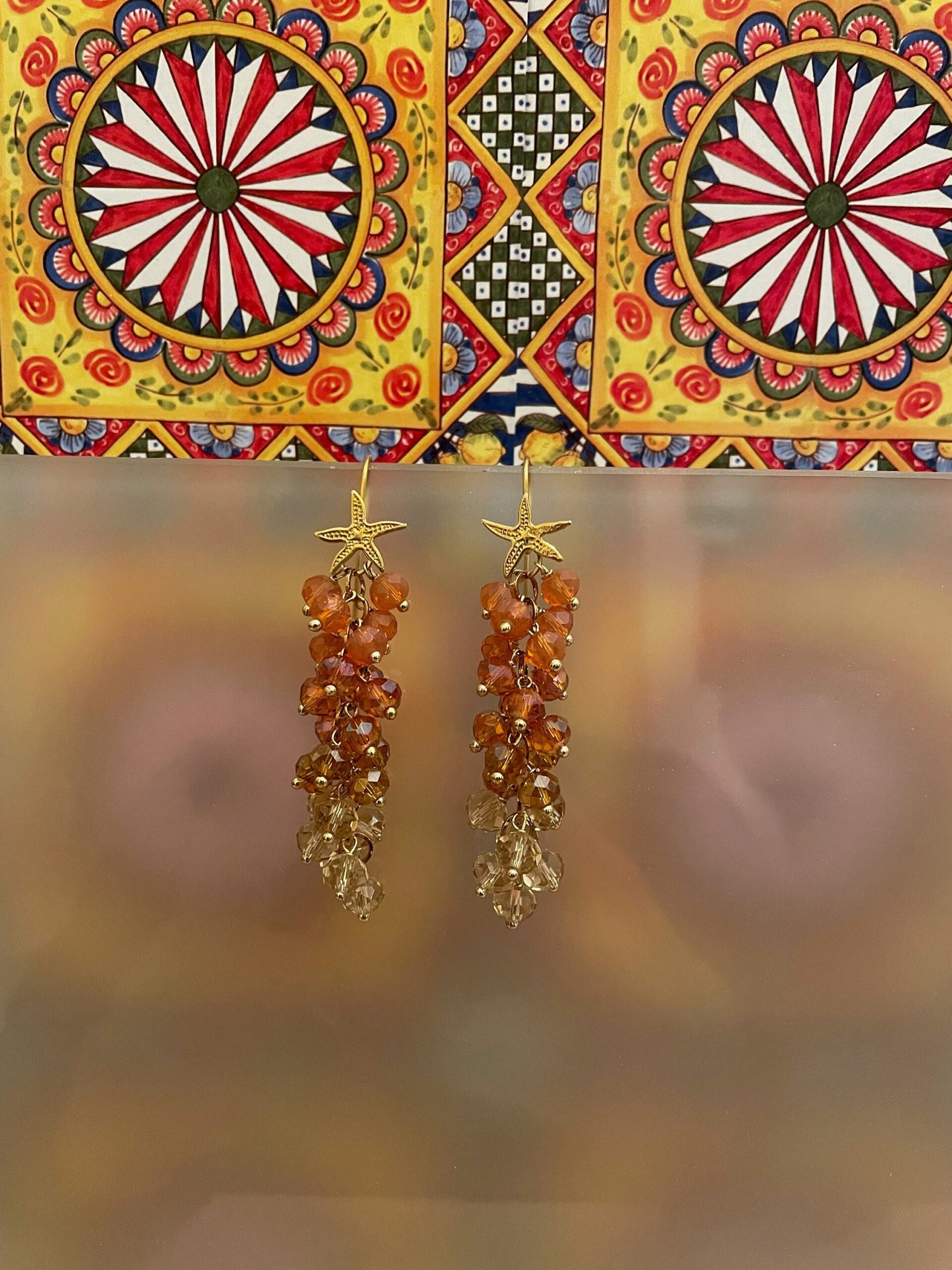 Realizzati con gancio Stella in argento dorato e grappolo di cristalli arancioni di varie gradazioni, che ti donerà luce ad ogni movimento!