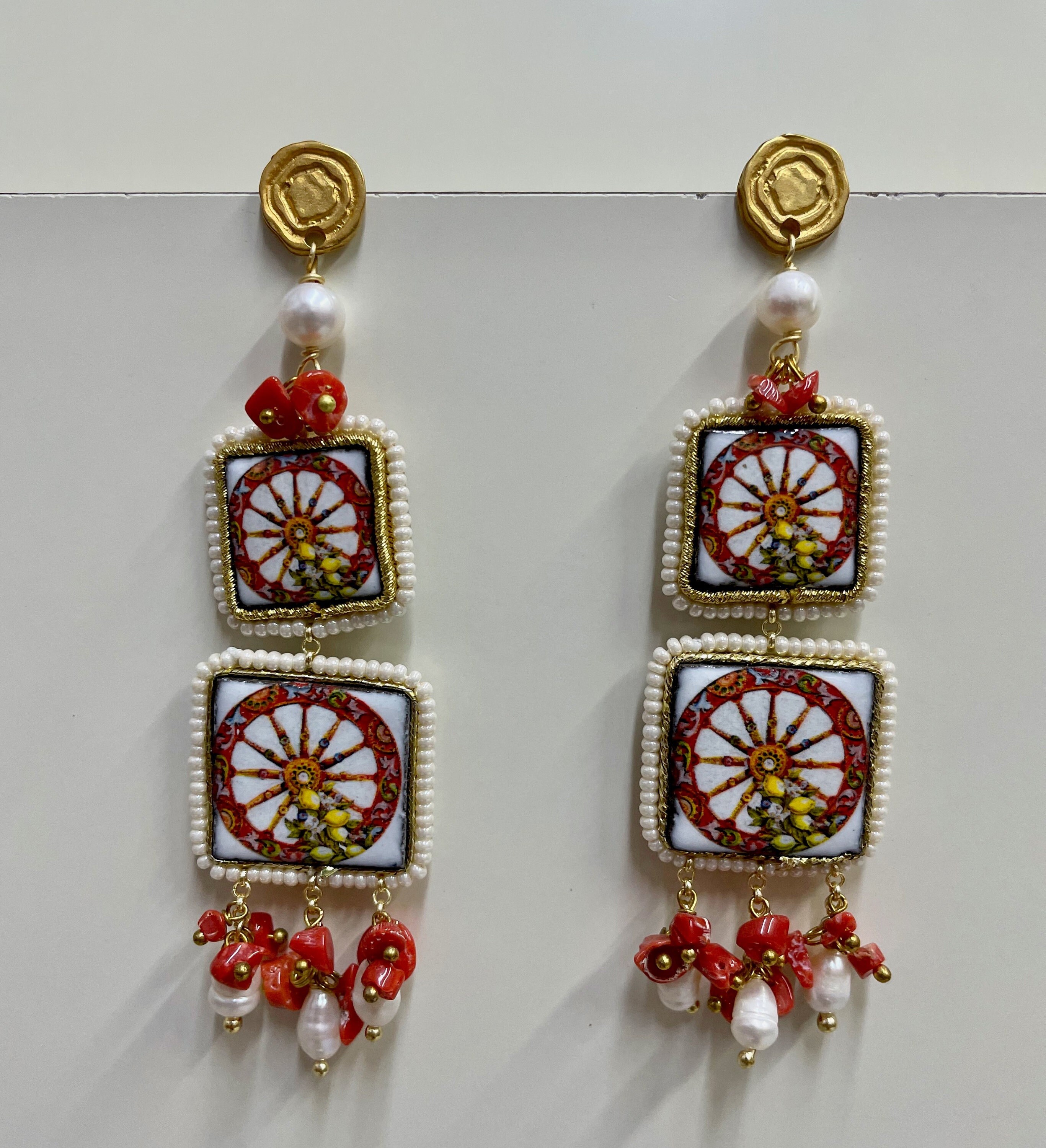 Entrambe le mattonelle sono incorniciate da microperle di fiume.