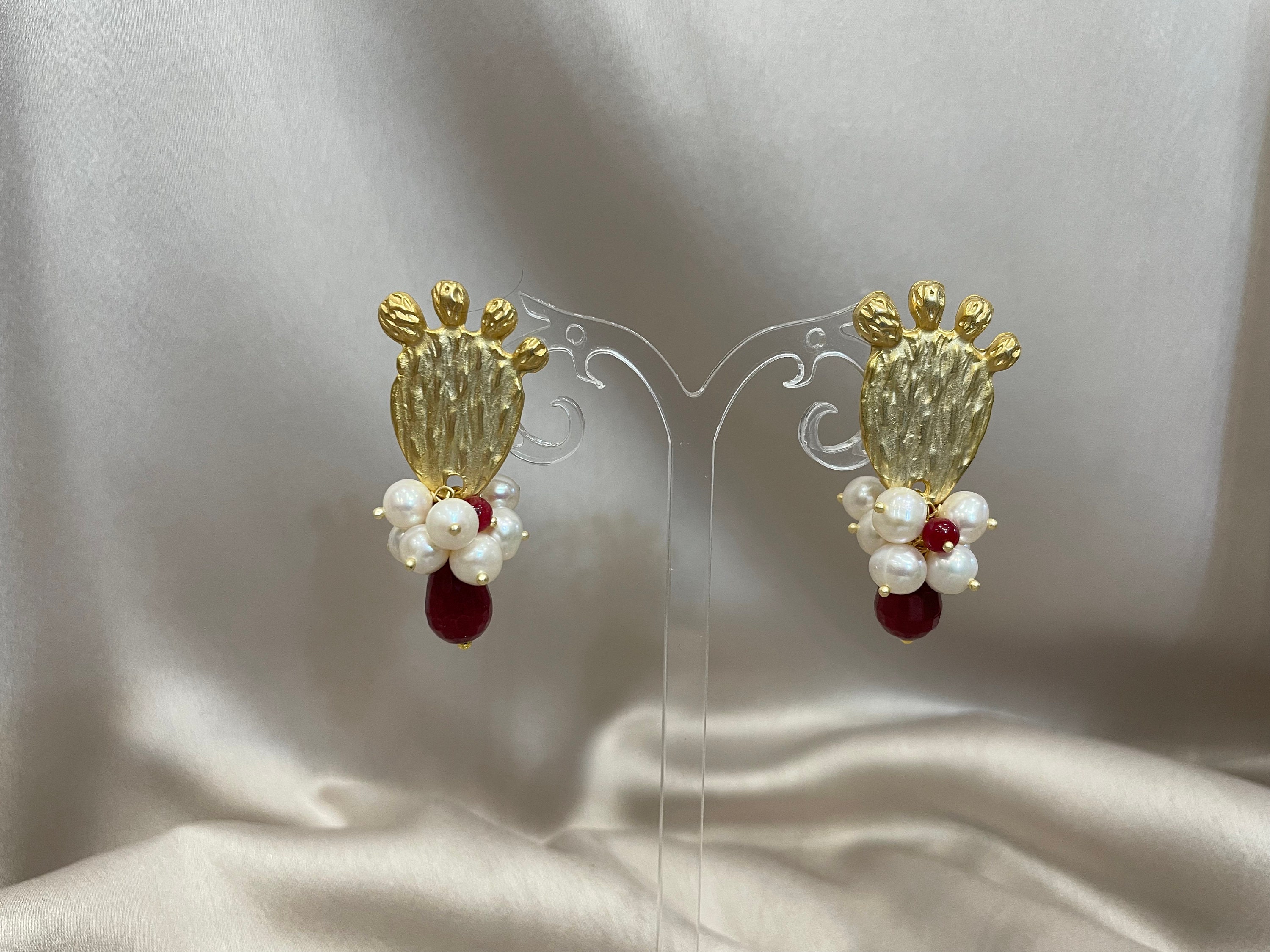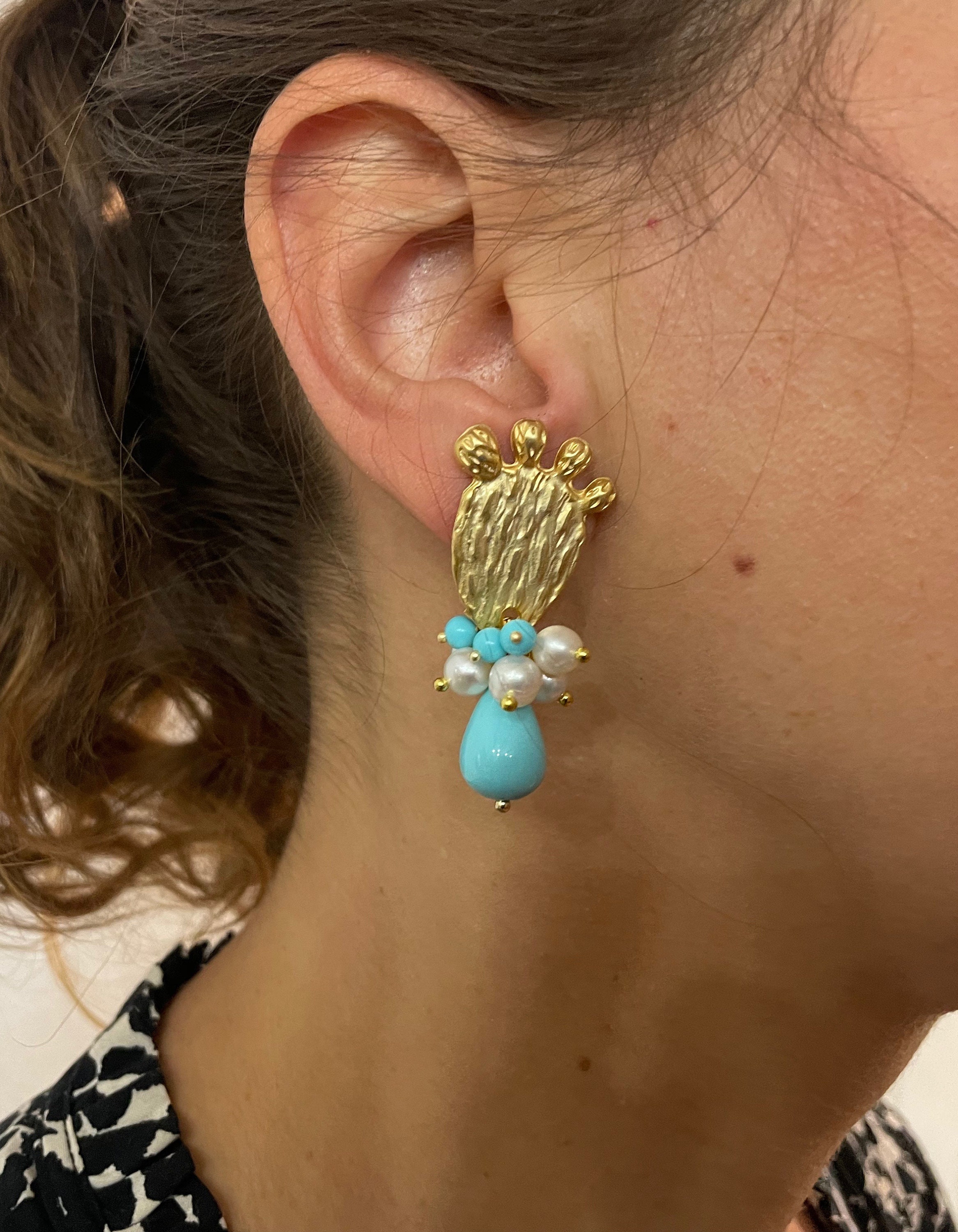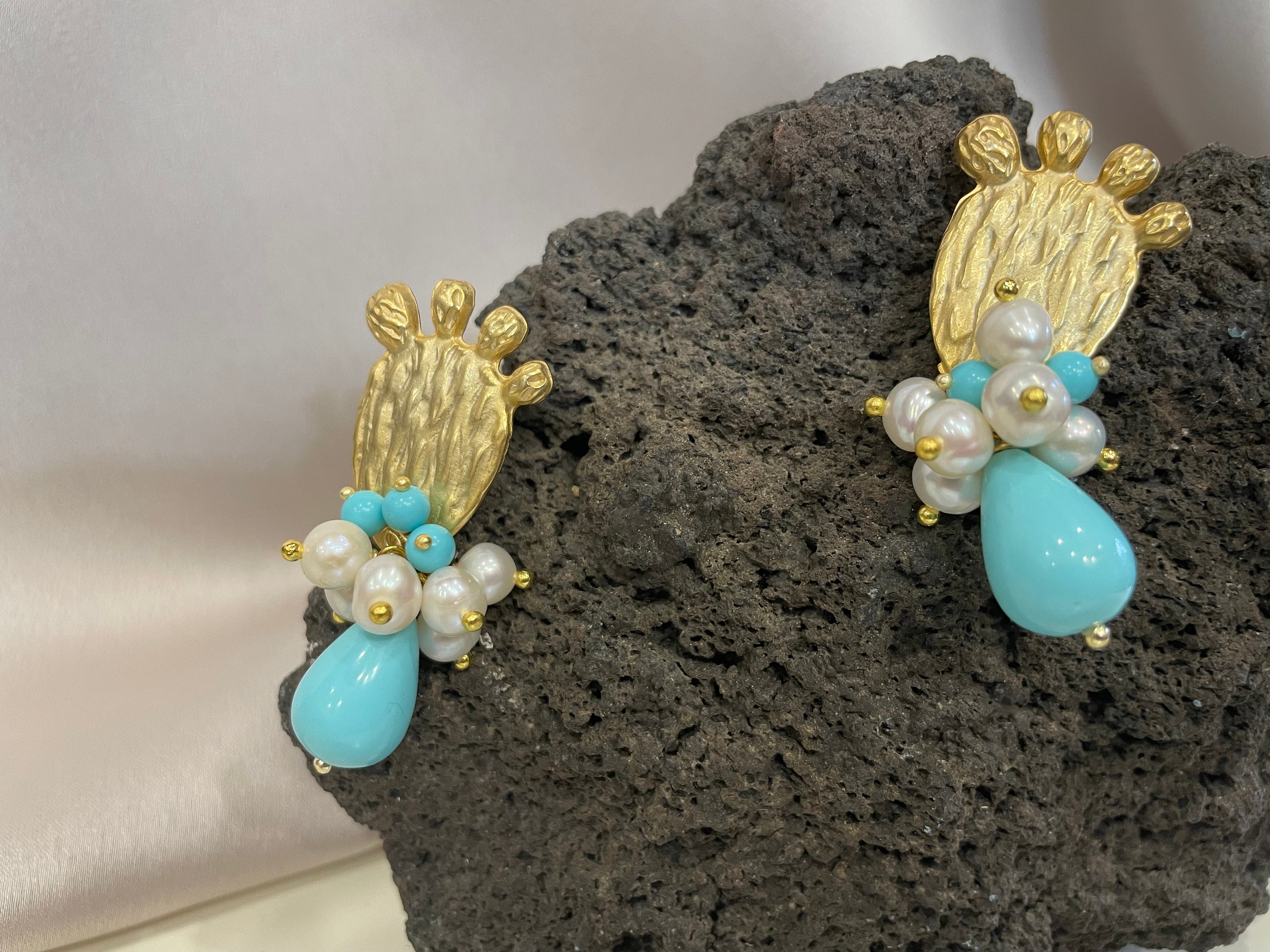 Pendente, grappolo di perle di fiume e di Pasta di turchese o Agata rossa secondo la variante scelta.