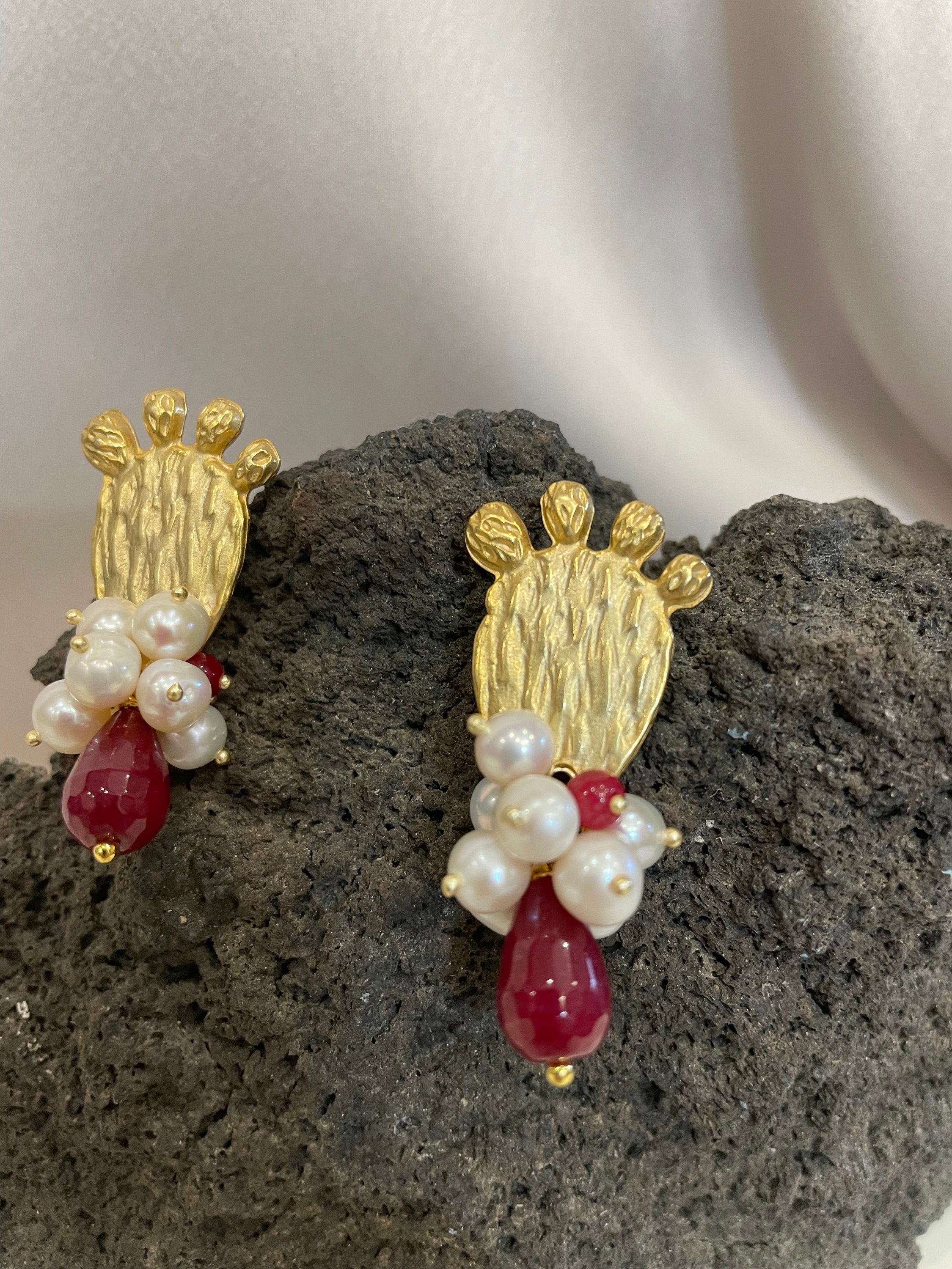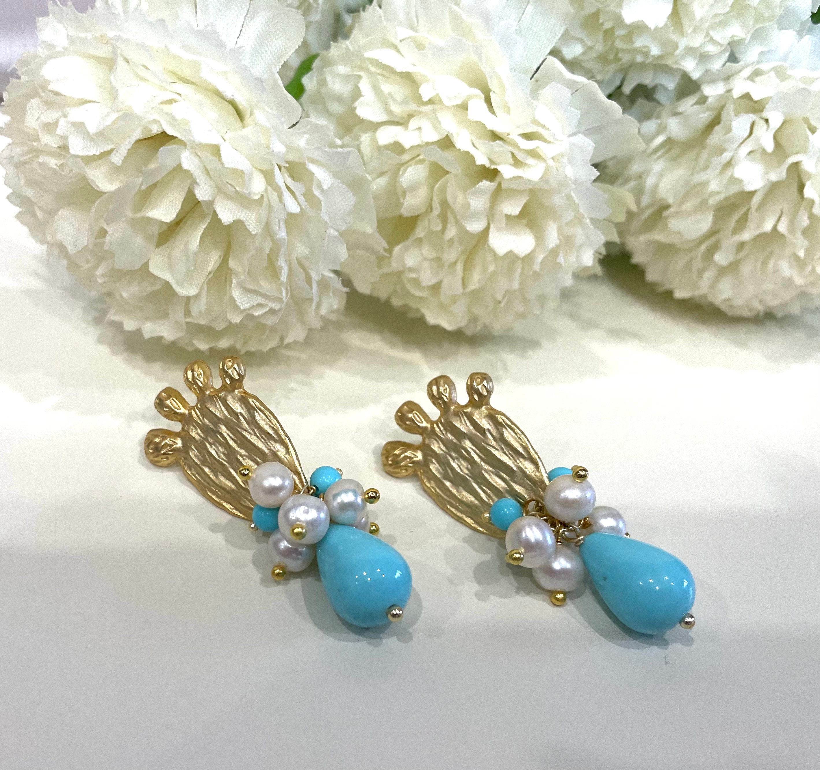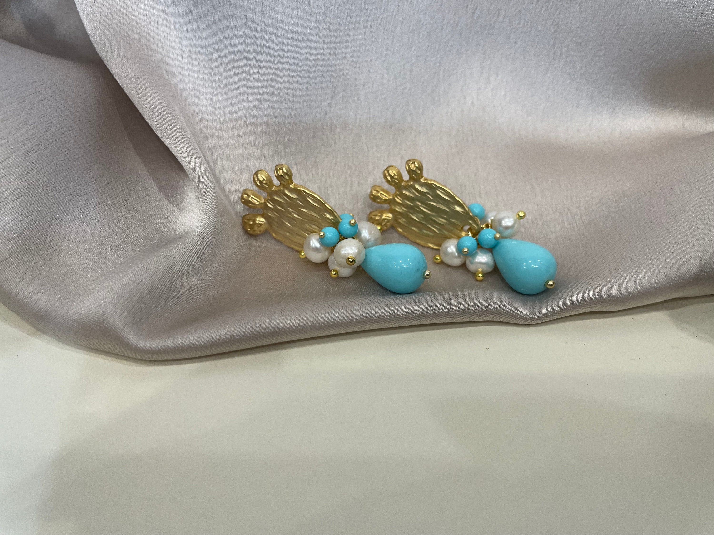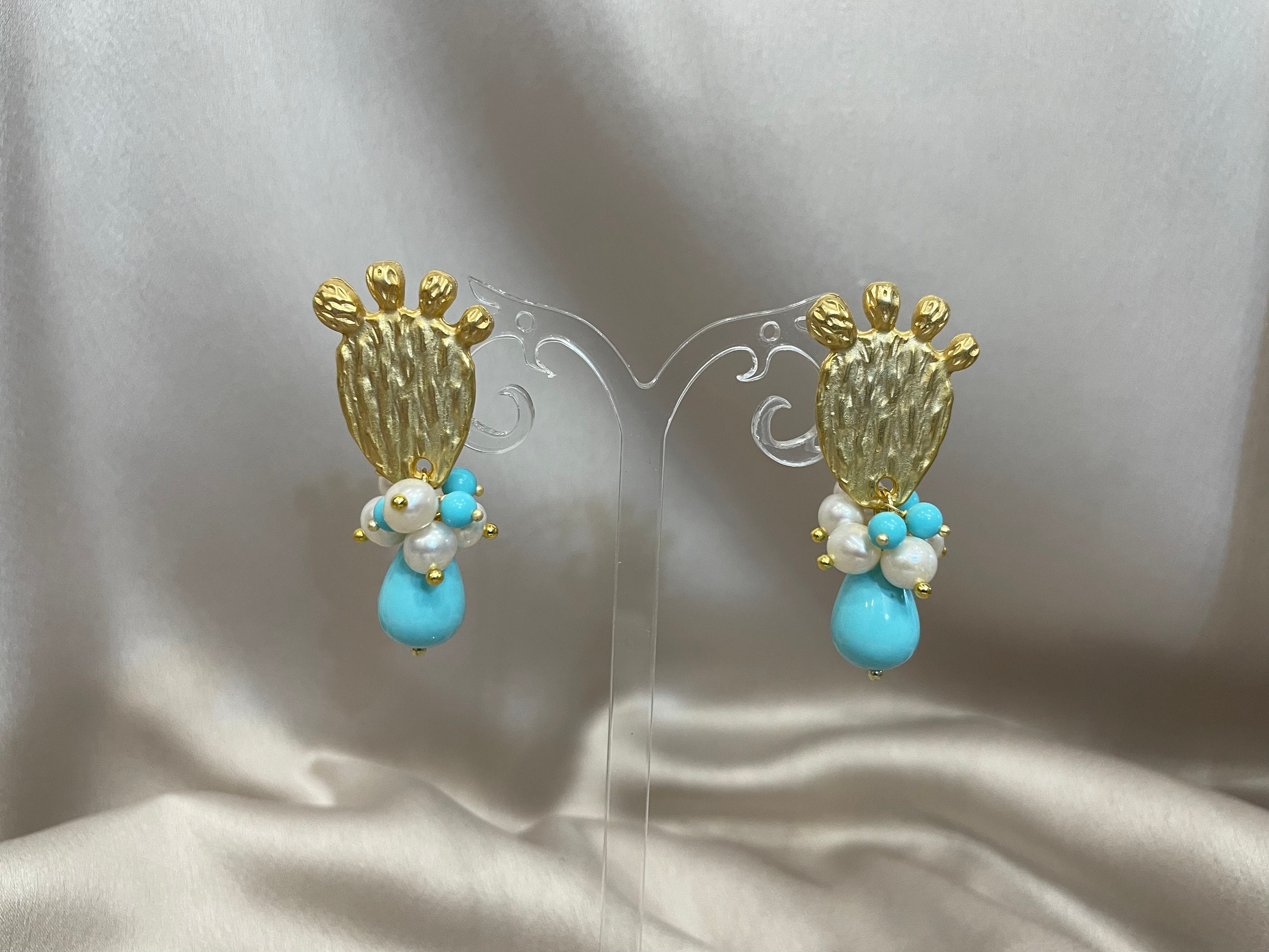 Pendente, grappolo di perle di fiume e di Pasta di turchese o Agata rossa secondo la variante scelta.