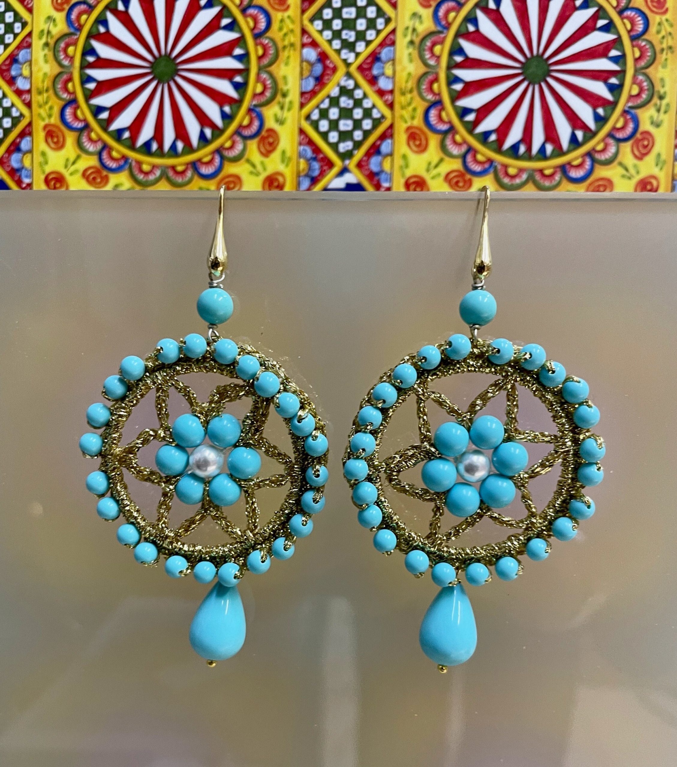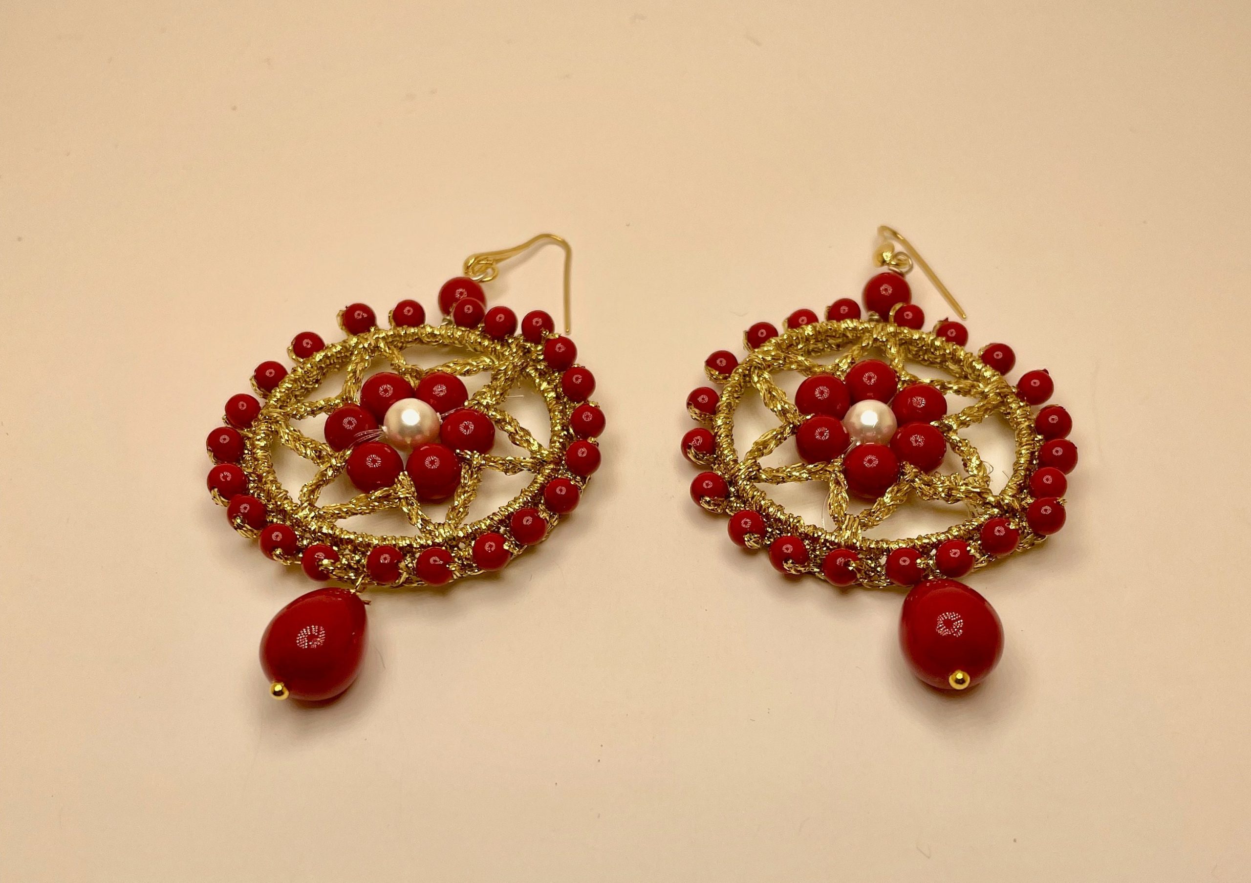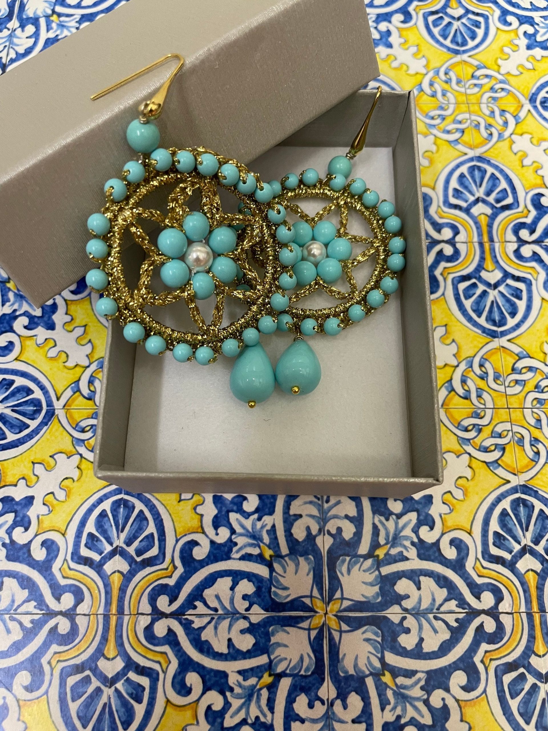 Realizzati con base in chiacchierino dorato e perle di Maiorca.