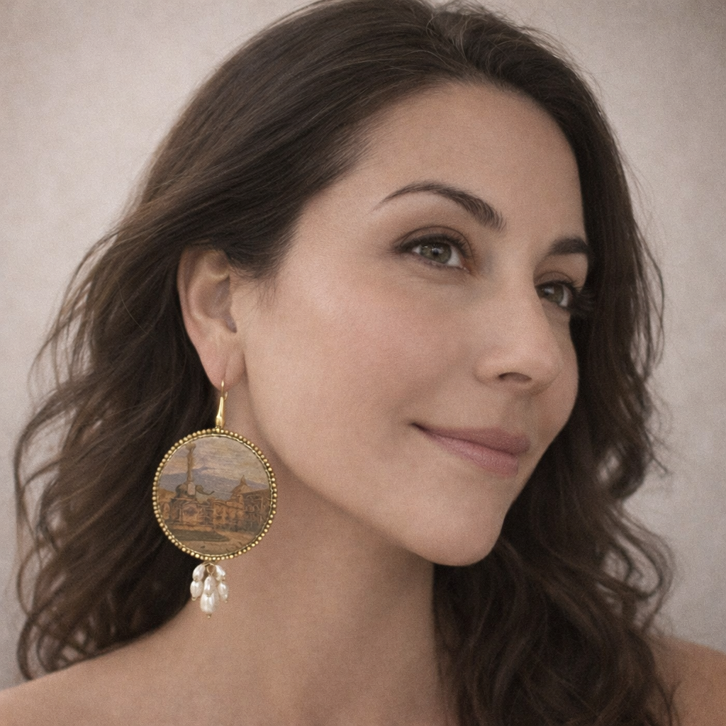 Questi orecchini possono essere abbinati alla collana con ciondolo della stessa collezione “Vedute di Sicilia”, visibile nella gallery del prodotto e acquistabile separatamente al seguente link.